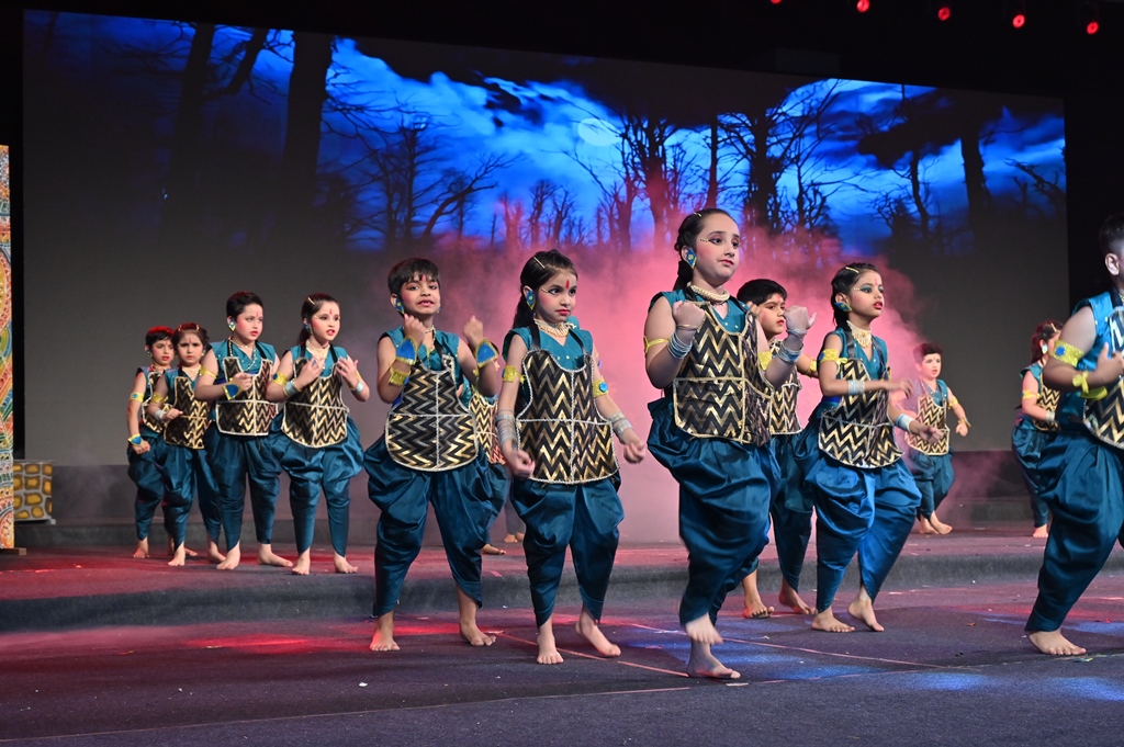 With 100% participation of over 350 students from UKG to Class II, the performance was a testament to teamwork and creativity. The entirely in-house production was further enhanced by impressive visuals and technical support.