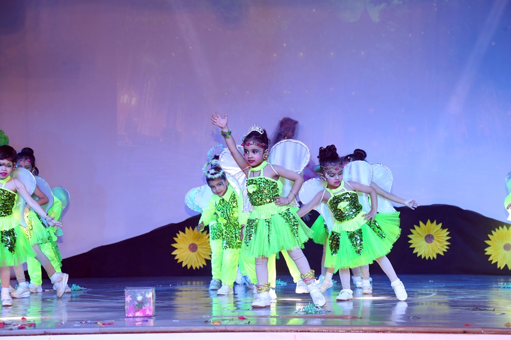 vibrant costumes, the tiny performers of Playgroup and Nursery lit up the stage