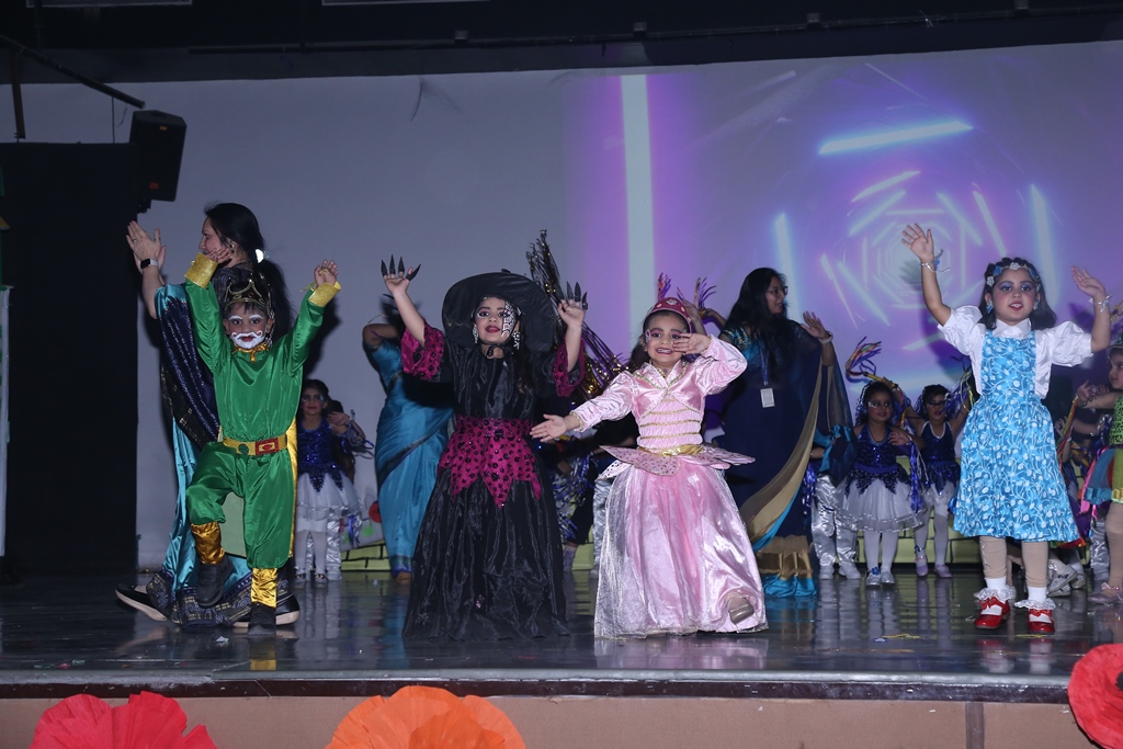 The colorful costumes, beautiful props and choreography added charm to the event and were all an in-house effort. It was indeed momentous to see nearly hundred percent participation of the young ones. The parents of little ones were touched and overjoyed to see their young ones performing so confidently on stage.