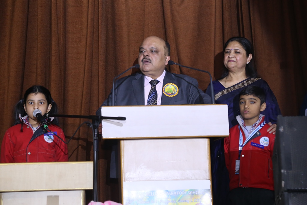 Mr. Ashish Gulati, Vice Chairman, Blue Bells Group of Schools graced the occasion with his benign presence as Chief Guest, Dr. Saroj Suman Gulati, Founder Director, Blue Bells Group of Schools graced the occasion with her esteemed presence as Guest of Honour and Madam Soumya Gulati, Deputy Director, Academic Development & Innovation, Blue Bells Group of Schools, graced the occasion as the revered Guest. The programme commenced with the auspicious Diya Lighting ceremony by the esteemed guests. Ms. Anu Sehgal, Headmistress, Blue Bells Preparatory School, accorded a cordial welcome to the august gathering.