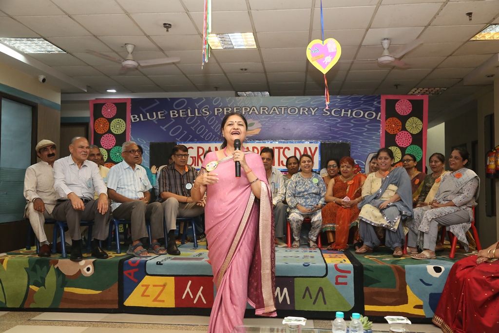 Dr. Saroj Suman Gulati, the Founder Director, Blue Bells Group of Schools graced the occasion and wished all the grandparents on this very special day and addressed them with her words of wisdom. She also honoured the meritorious students for bringing laurels and coveted OVER ALL TROPHY for the school in an Inter School Competition held at Suncity School.