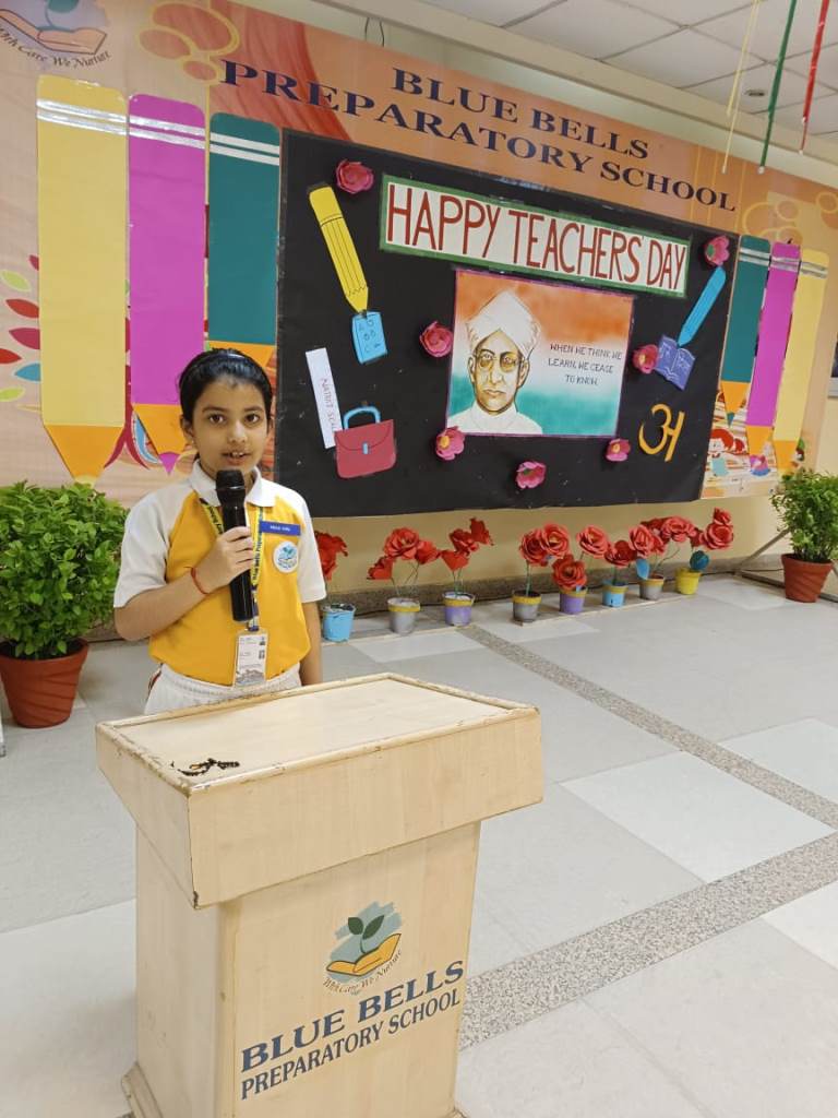 The students of Blue Bells Preparatory School put up a beautiful show to celebrate Teacher’s day with great reverence and grandeur on 4th September 2024. They expressed their love and gratitude and paid tribute to their teachers through very creative and lovely handmade cards. The programme incorporated a talk, poem, song, dance and acrostic poem indicating how teachers play a vital role in making their students responsible citizens of tomorrow and wonderful human beings.