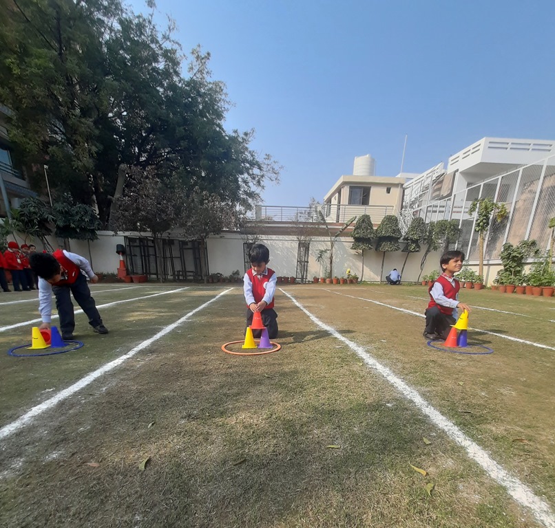 Blue Bells Preparatory School organized the Annual Athletic Meet 2023-2024 for classes Pre Nur to II displaying the qualities of sportsmanship and team work of students. The event laid the emphasis of Sports in physical and mental development of a child. Students exhibited their athletic skills and competed with great stamina and vigour in different races like Colour Race, Pyramid Race, Cap the Cone and Agility Race. The energetic participants performed and won the various events by displaying their exemplary sporting skills.