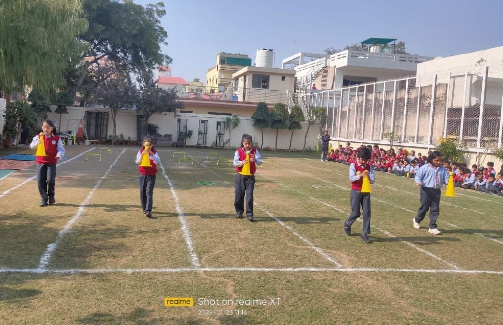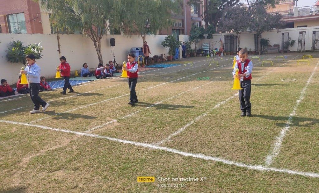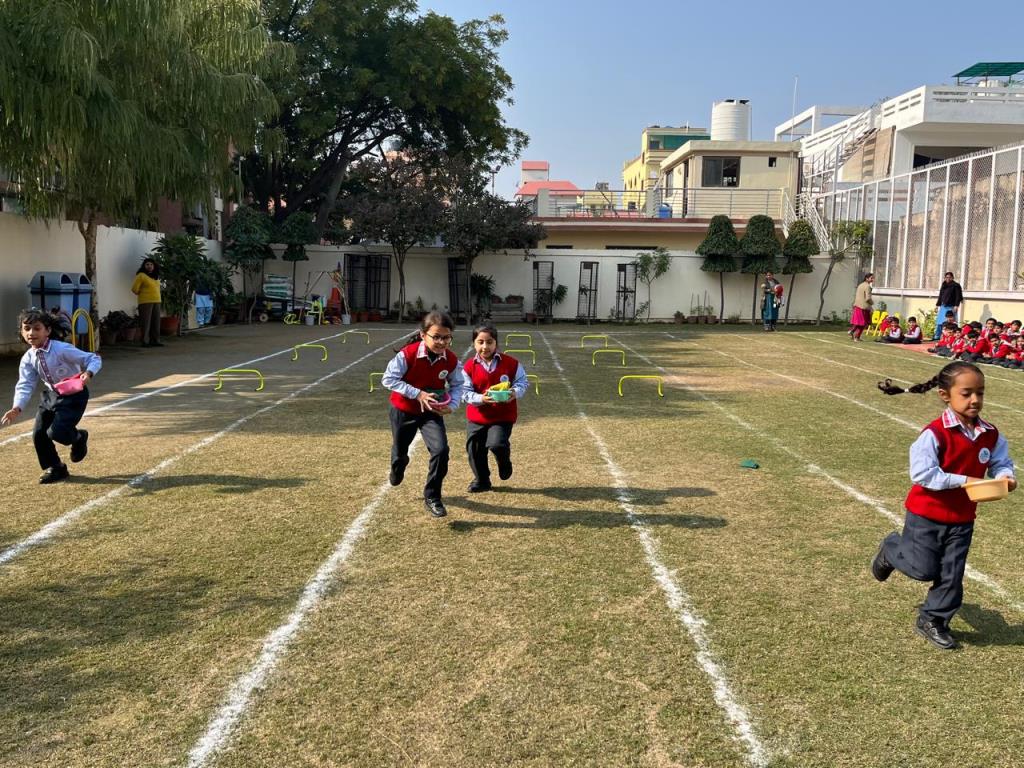 To facilitate the students to recognize their sporting potential and to instill a sense of healthy competition and sportsmanship in them, Annual Athletic Meet 2024-2025 was organized for Play group and classes Nur to II. The energetic students exhibited their athletic skills and competed with commendable vigour and enthusiasm in different races and won the various events.