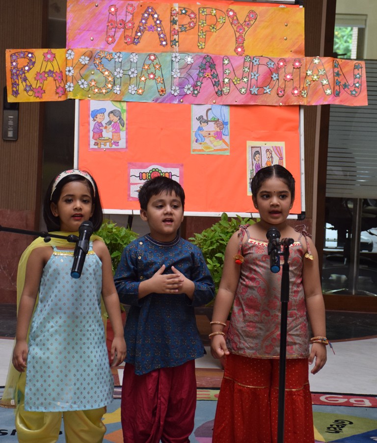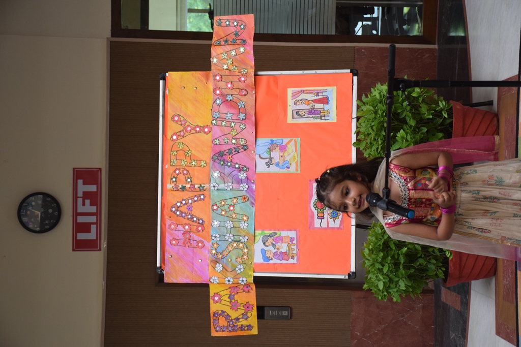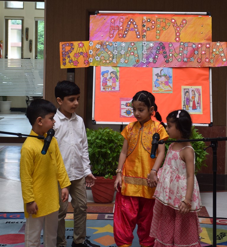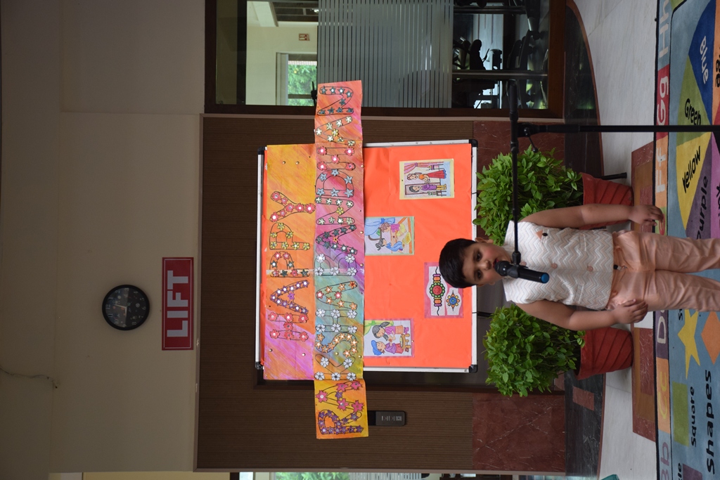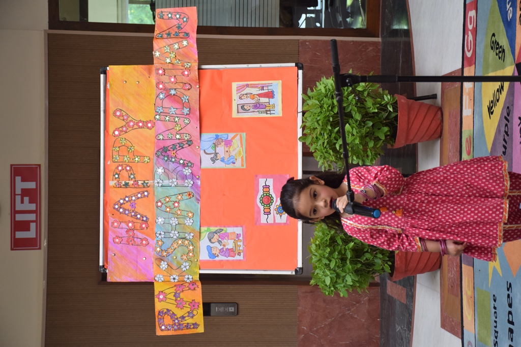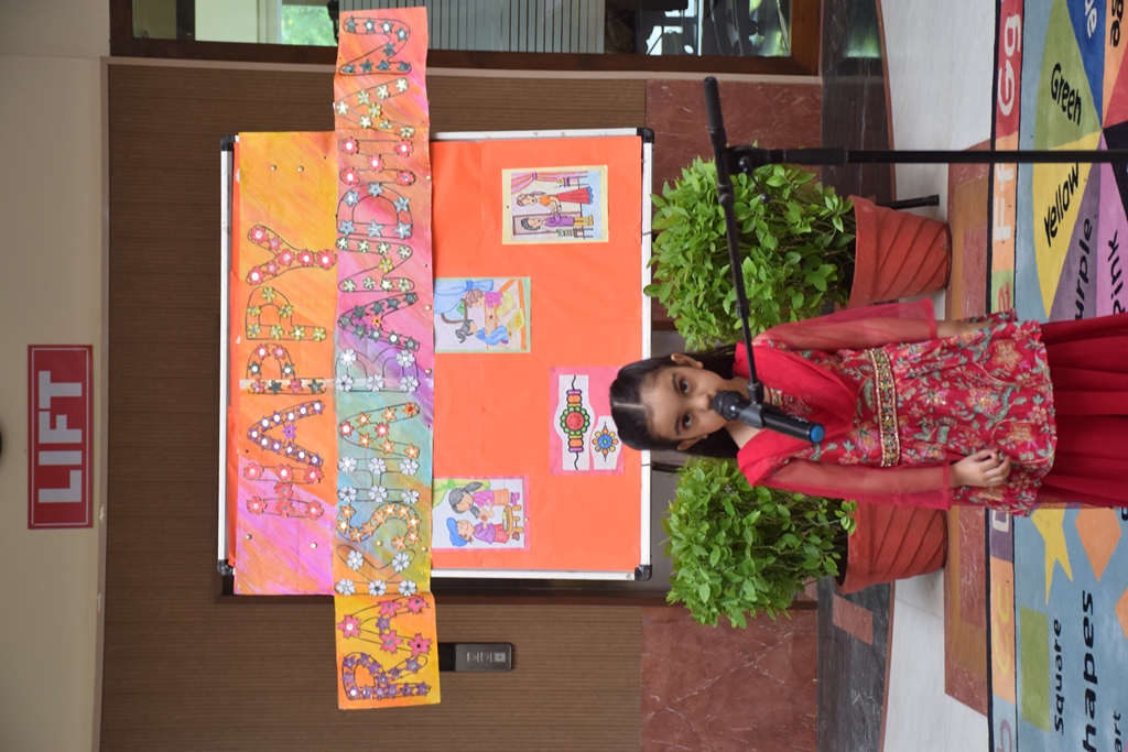 Celebrating the loving spirit of the upcoming festival, Raksha Bandhan, tiny tots of LKG and UKG presented a special assembly. Students presented a talk and skit showcasing the essence of this festival. This was followed by a melodious action song rendition. The headmistress -Mrs Anu Sehgal and Management extended their warm wishes and blessings to students and their families on this occasion.