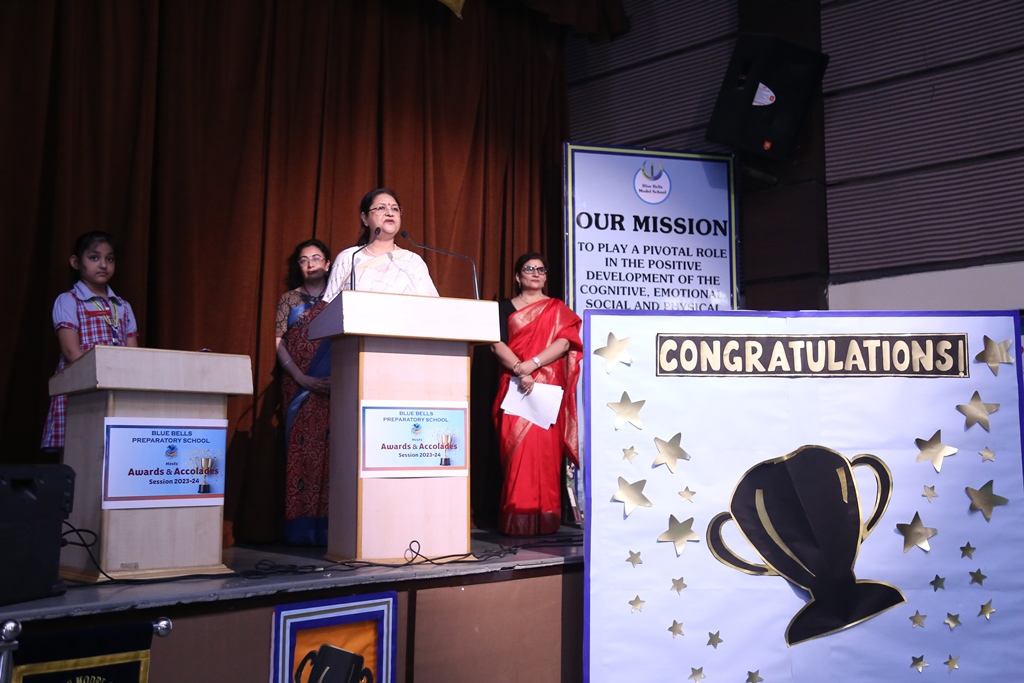 Blue Bells Preparatory School organized an Award Distribution Ceremony ‘Awards & Accolades’ on Saturday, 28.09.2024. The meritorious students for the Session 2023-24 were awarded prizes for excellence in academics and co-curricular categories.