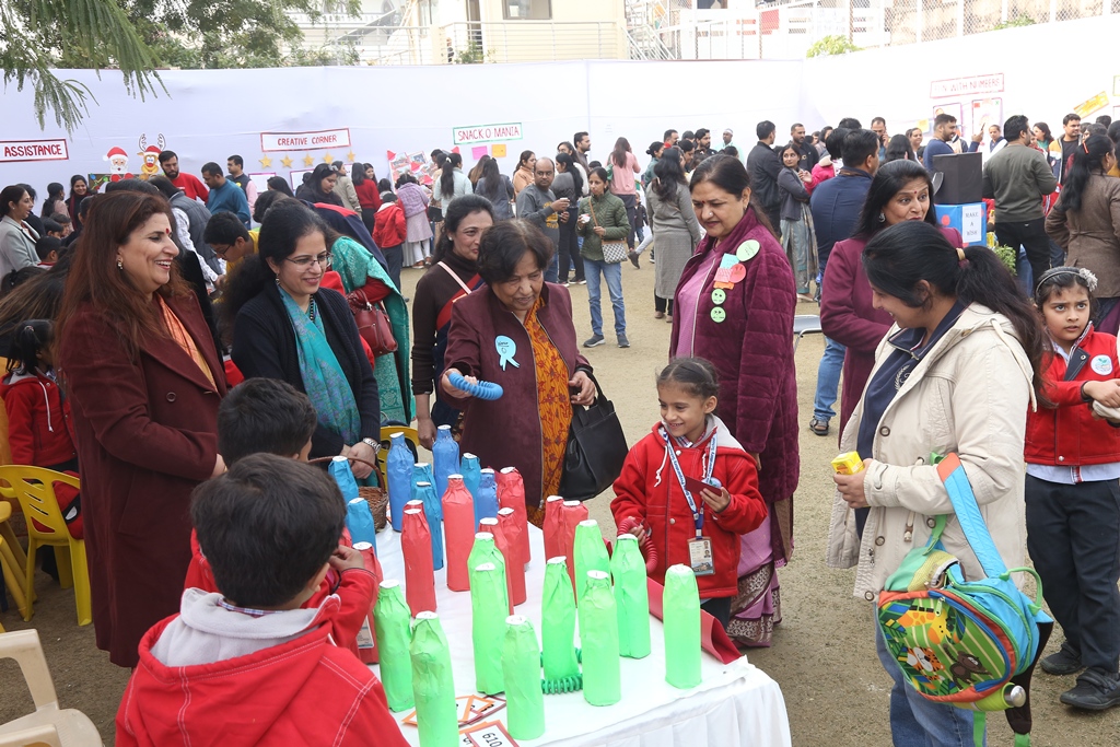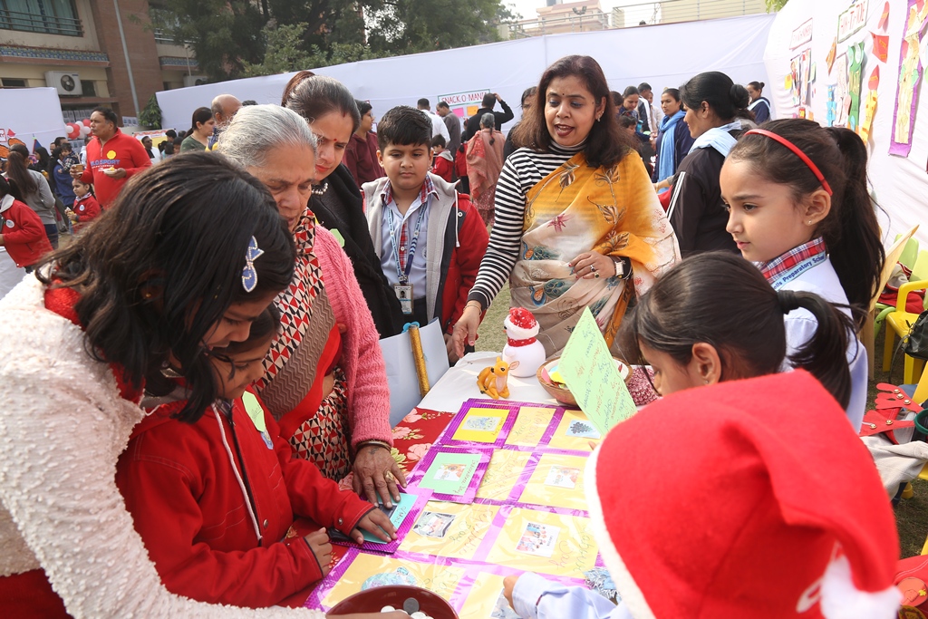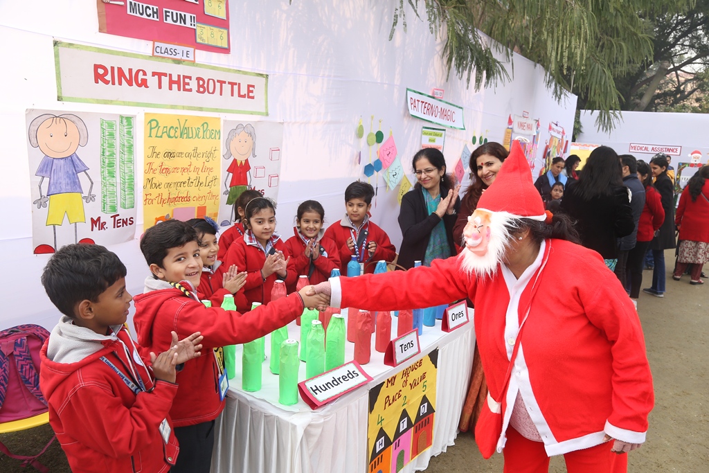 Mathematics is nothing less than a game, a game that polishes intelligence and boosts concentration. Students of Grades I and II and their parents had their choice of more than a dozen fun and interactive math games and activities that were thoughtfully planned and were spread throughout the brightly decorated grounds and run by the students. Students and parents stopped to capture a memory with Santa at the Selfie Station.