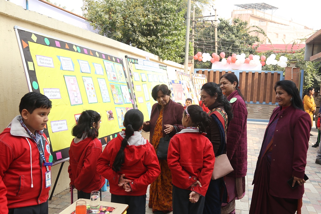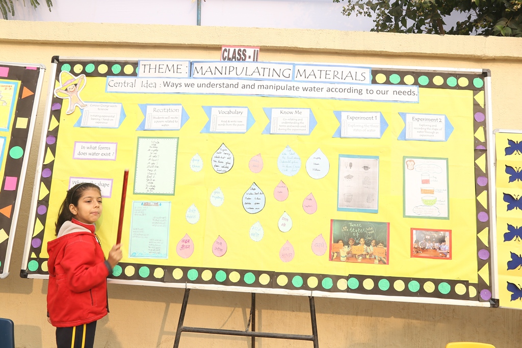 As part of the Back-to- School Series, a Gallery Walk was also organized for parents to witness the progression of the themes-‘Manipulating Materials’ for Grade II and ‘Landforms’, for Grade I. Explanation of theme boards was done so confidently by the students themselves and the experiments on water were testimony to the fact that students enjoy hands on activities.