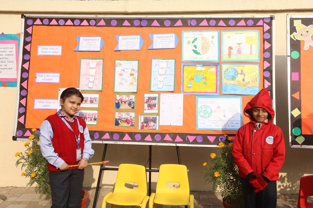 As part of the Back-to- School Series, a Gallery Walk was also organized for parents to witness the progression of the themes-‘Manipulating Materials’ for Grade II and ‘Landforms’, for Grade I students. The recitation of poems, explanation of theme boards was done so confidently by the students themselves and the experiments on water were testimony to the fact that students enjoy hands on activities.