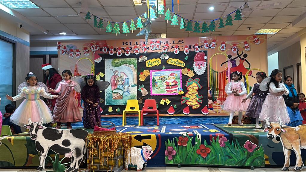 Soaking in the spirit of Christmas and enjoying the festive vibes, the students of Blue Bells Preparatory School celebrated the festival of joy and cheer with great zeal and fervor. The significance of the festival was explained by the students of Grade II followed by carols, musical dance and a skit depicting the birth of Lord Jesus Christ by the tiny tots of Nursery and LKG. They danced merrily to the foot tapping melodies of Christmas.