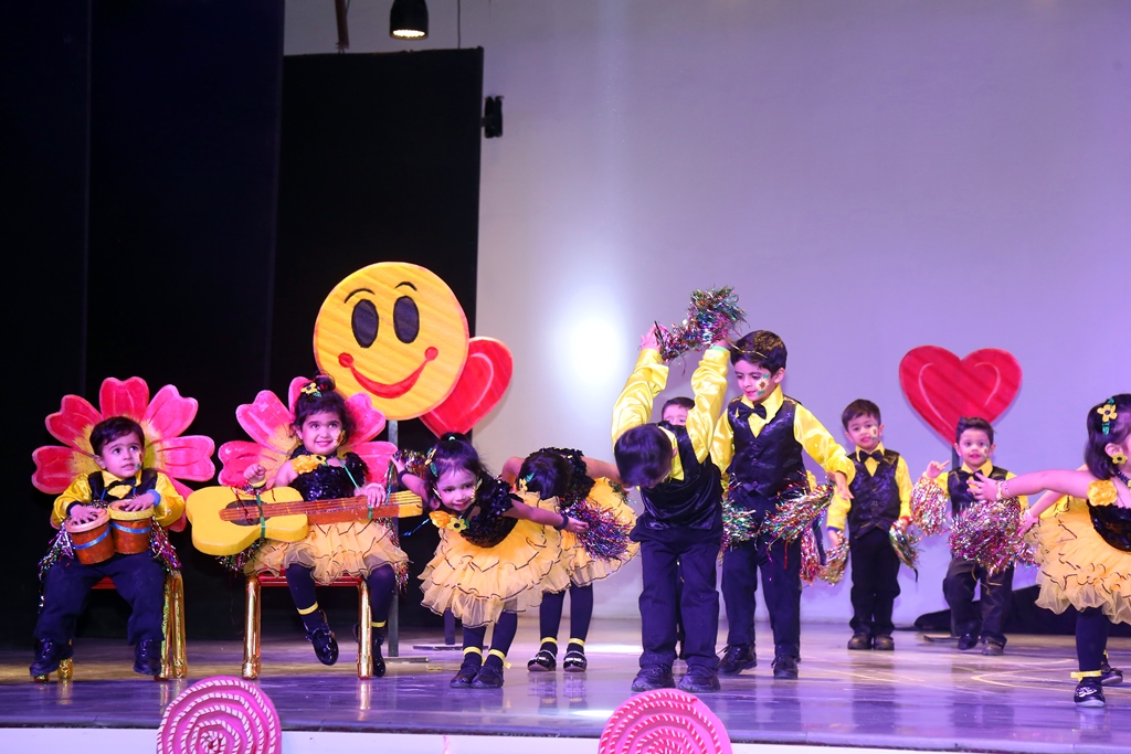 vibrant costumes, the tiny performers of Playgroup and Nursery lit up the stage