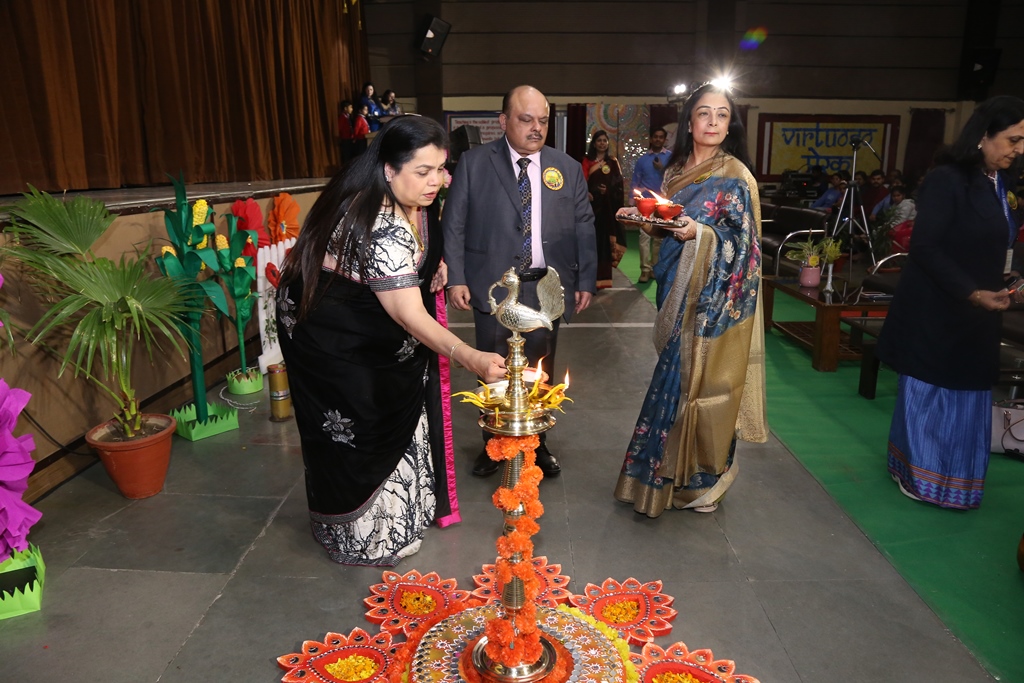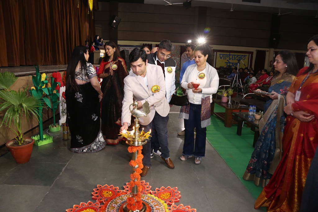 Mr. Ashish Gulati, Vice Chairman, Blue Bells Group of Schools graced the occasion with his benign presence as Chief Guest, Dr. Saroj Suman Gulati, Founder Director, Blue Bells Group of Schools graced the occasion with her esteemed presence as Guest of Honour and Madam Soumya Gulati, Deputy Director, Academic Development & Innovation, Blue Bells Group of Schools, graced the occasion as the revered Guest. The programme commenced with the auspicious Diya Lighting ceremony by the esteemed guests. Ms. Anu Sehgal, Headmistress, Blue Bells Preparatory School, accorded a cordial welcome to the august gathering.