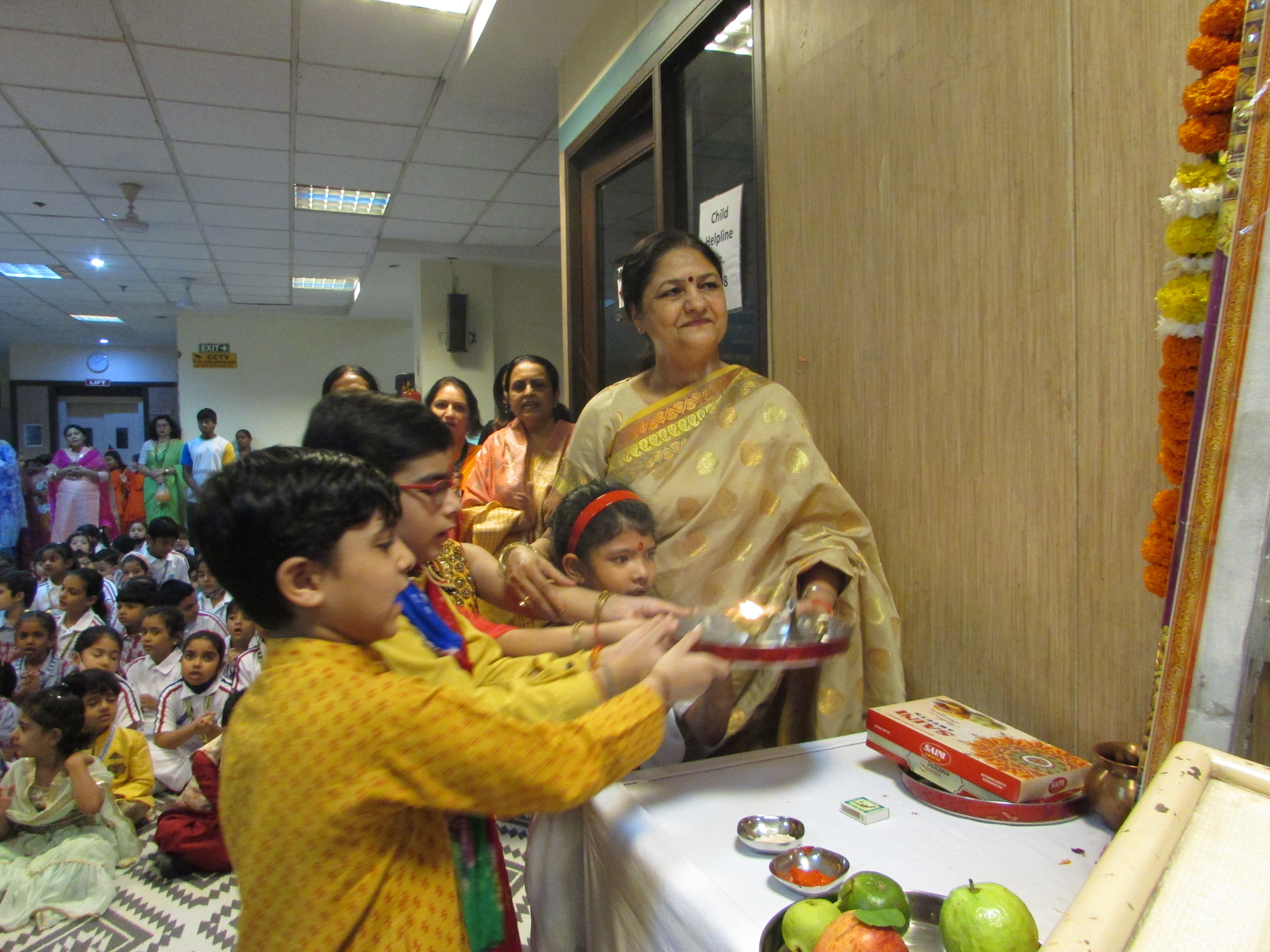 The celebration began with Lakshmi pooja which was performed by the Headmistress, staff and students of the school.