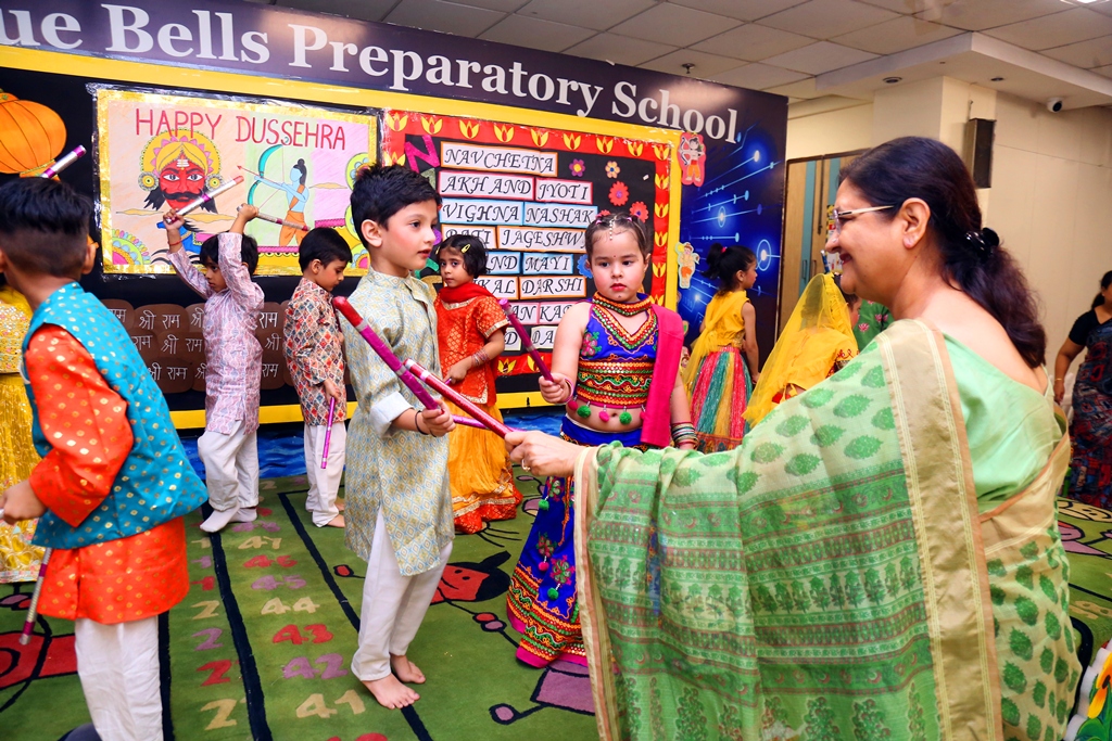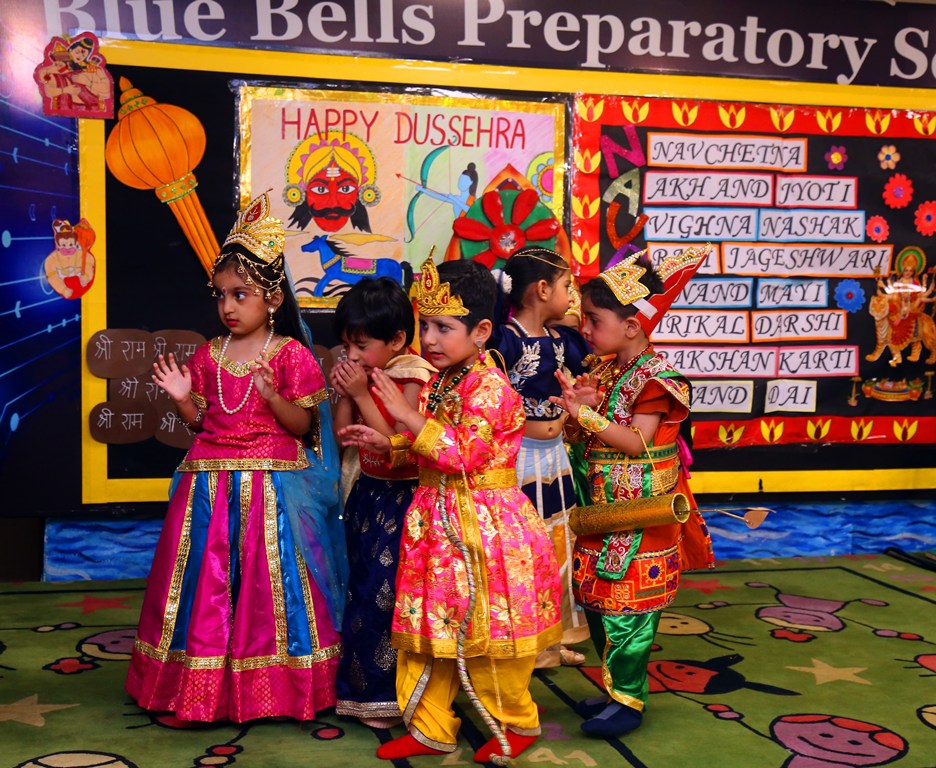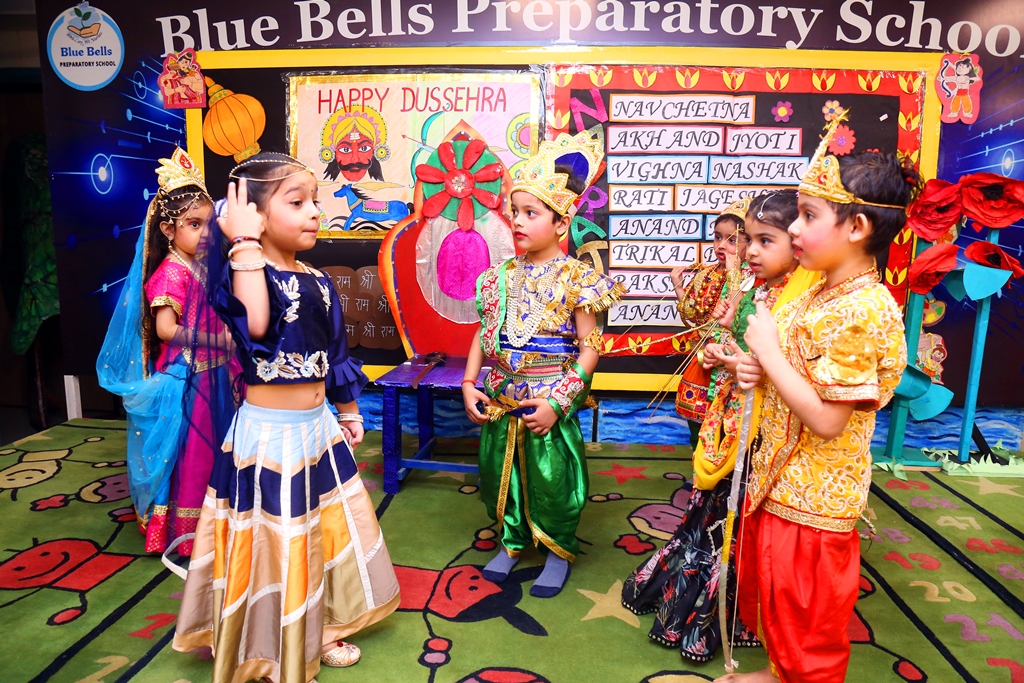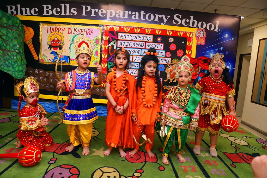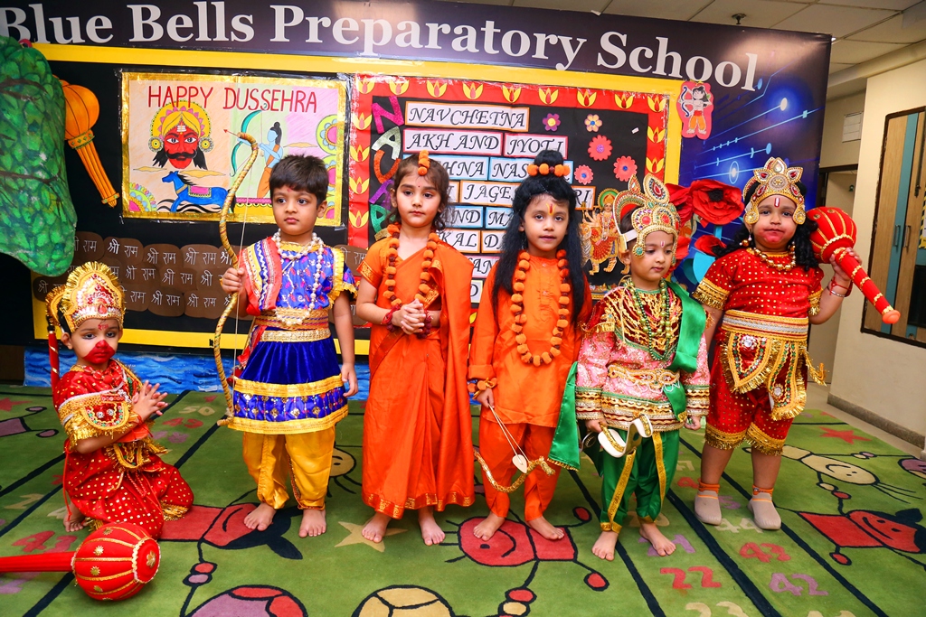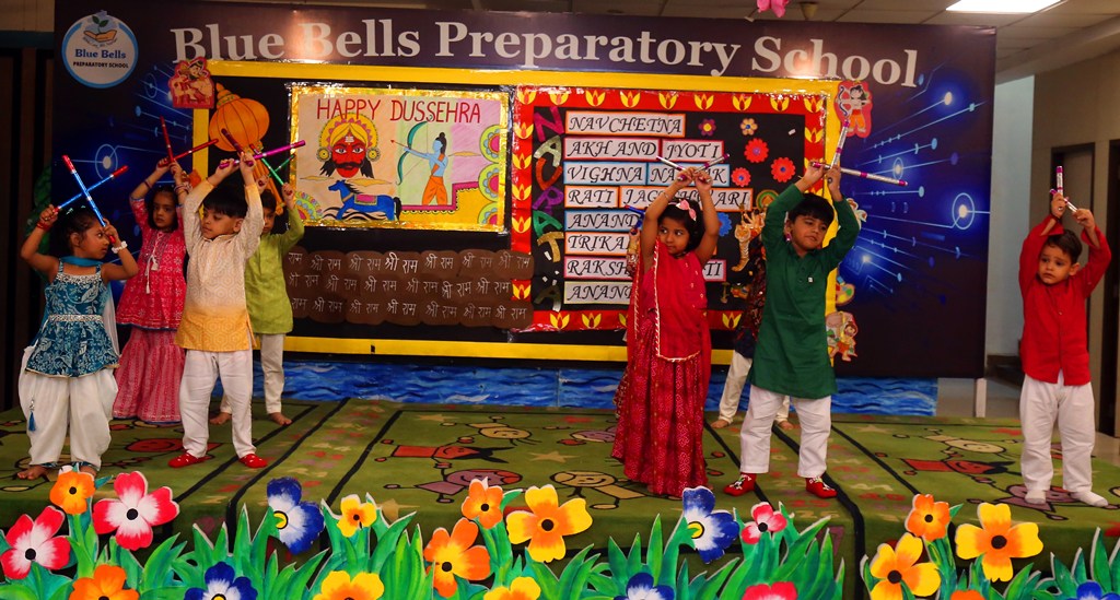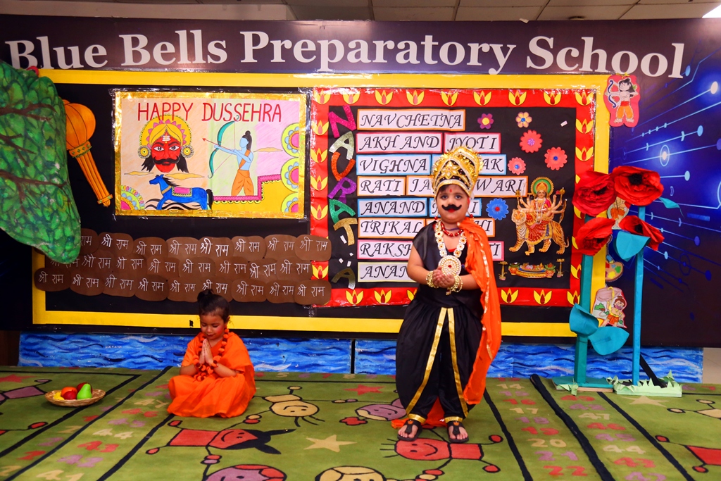 Dussehra and birth anniversaries of Mahatma Gandhi ji and Lal Bahadur Shastriji were celebrated with great zeal and enthusiasm at Blue Bells Preparatory School. Students of UKG paid their tribute to Gandhiji and Shastriji by sharing the important teachings of these two great leaders.