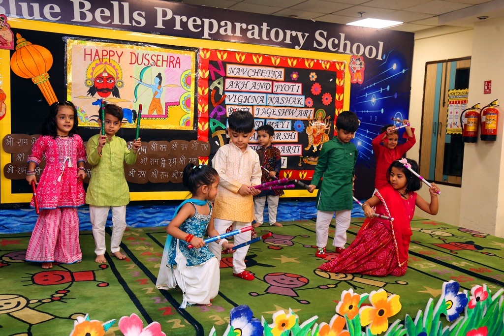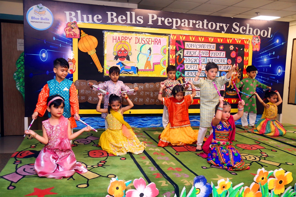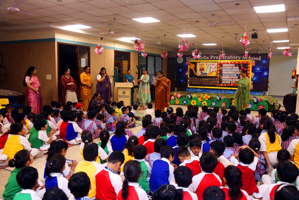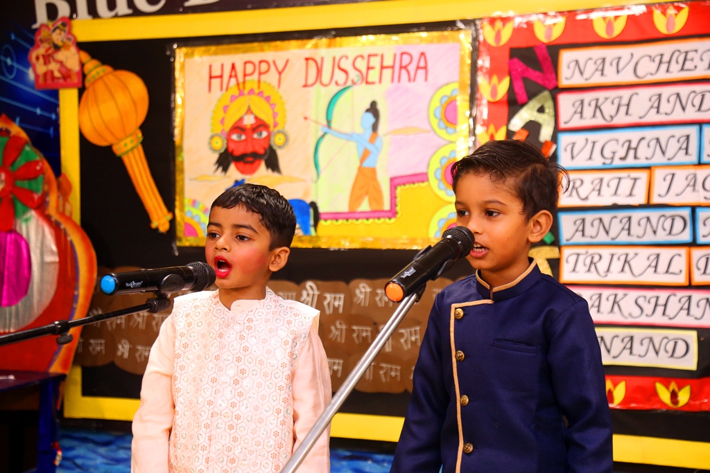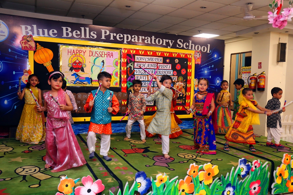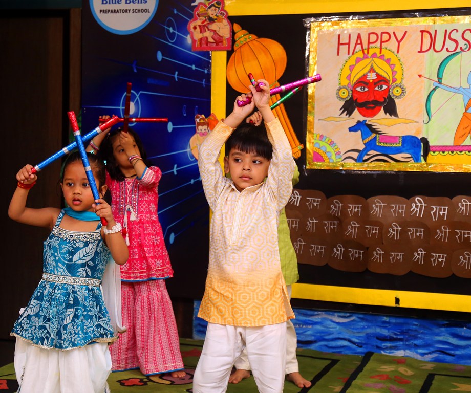 Dussehra and birth anniversaries of Mahatma Gandhi ji and Lal Bahadur Shastriji were celebrated with great zeal and enthusiasm at Blue Bells Preparatory School. Students of UKG paid their tribute to Gandhiji and Shastriji by sharing the important teachings of these two great leaders.
