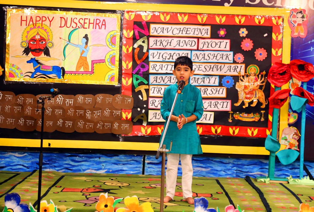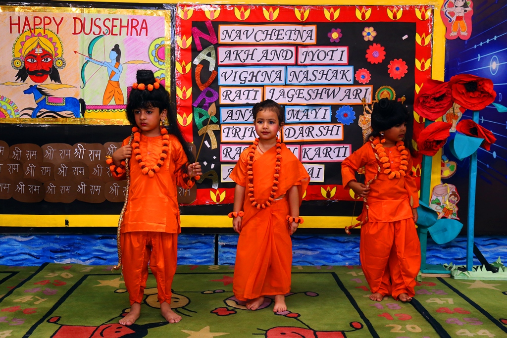 This was followed by Dussehra celebration. Students Of Nursery and LKG presented a melodious rendition of a poem ‘Raja Ram bade Veer the’