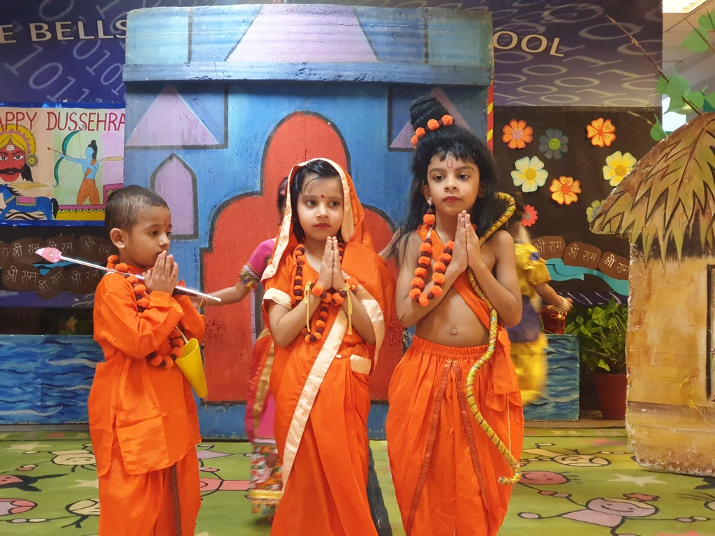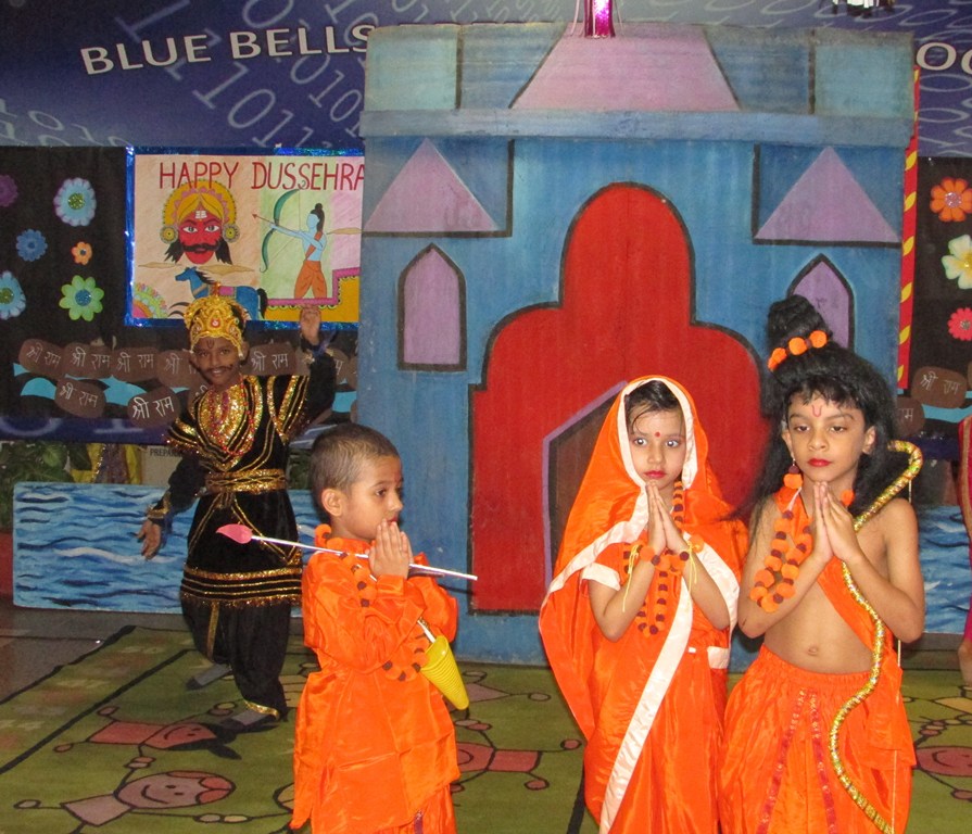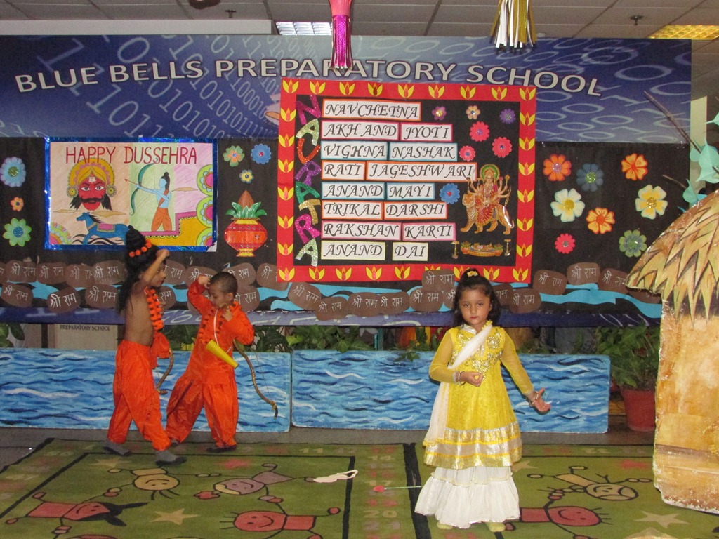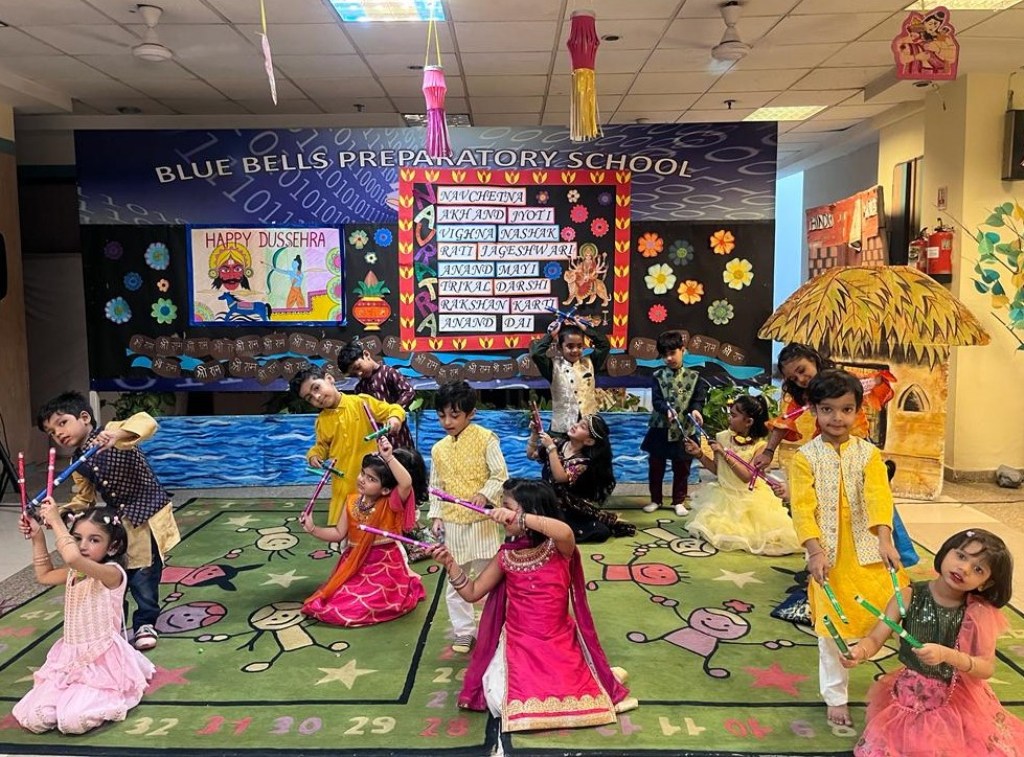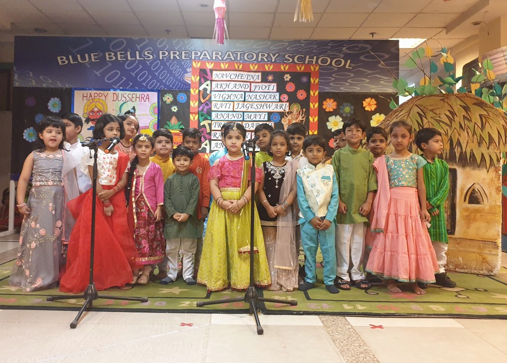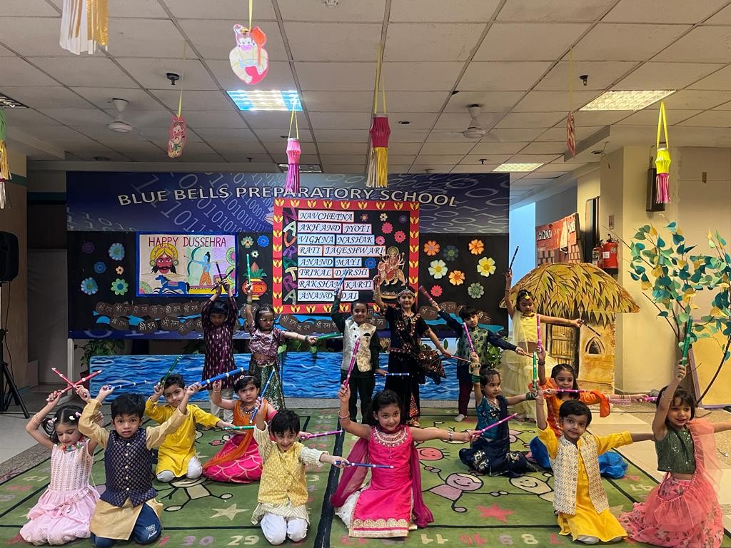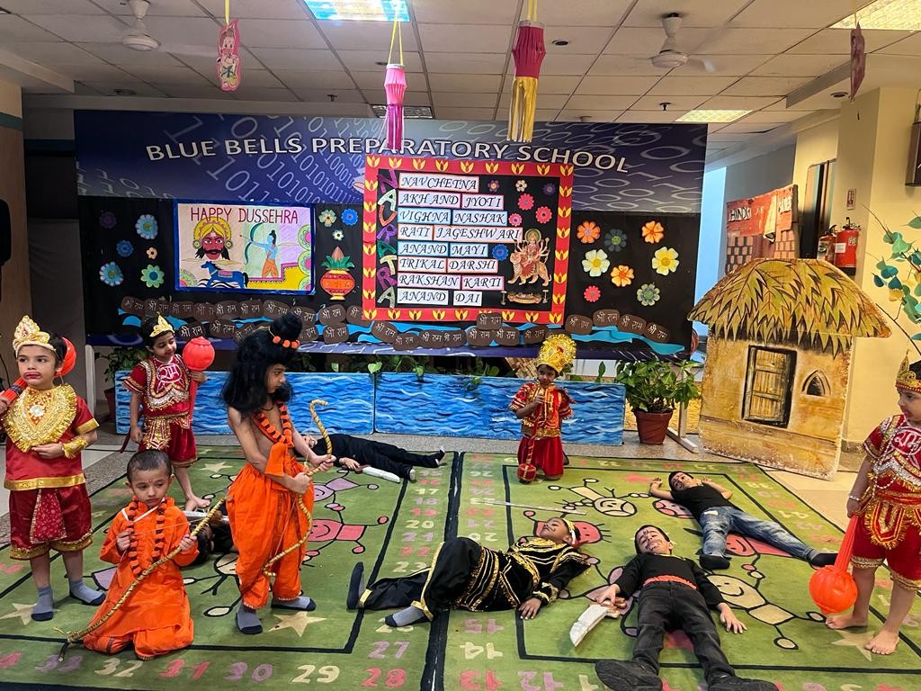 Dussehra festival was celebrated with great fervour and enthusiasm by the students of Blue Bells Preparatory School on 30th September 2022. The festival that marks the victory of good over evil was depicted through a well enacted skit by UKG students. The life of Lord Rama and his victory over Ravana was nicely presented by the young ones. A melodious rendition “Aaya Dussehra Khushi manao” was sung by the little ones. A rhythmic and vibrant dance ‘Dandia’ was performed that truly enthralled the audience.