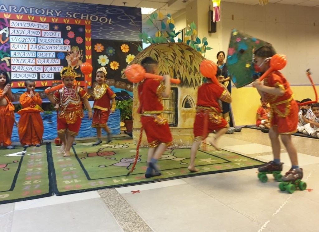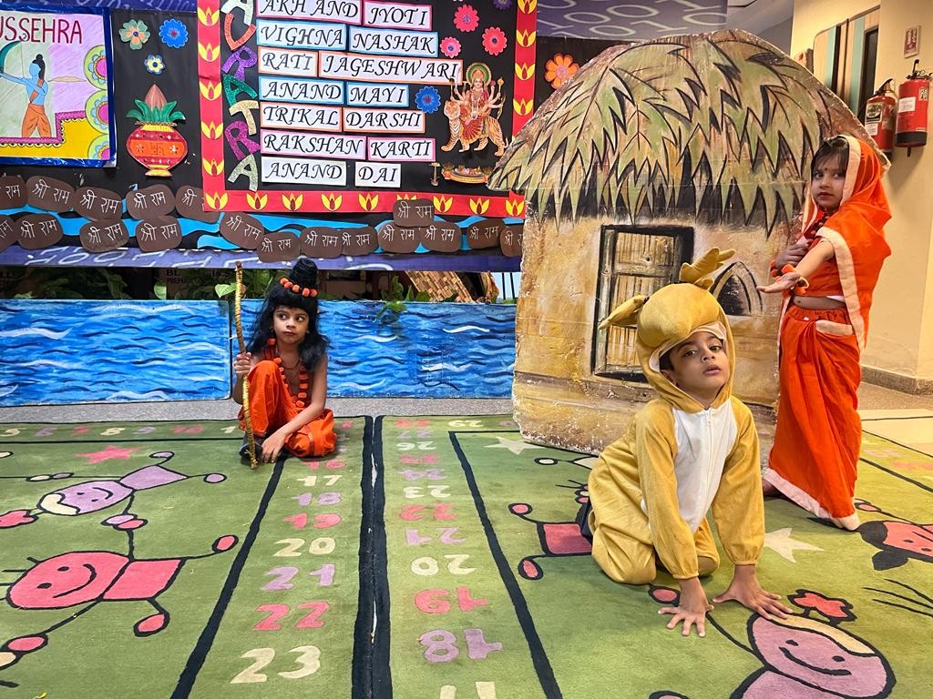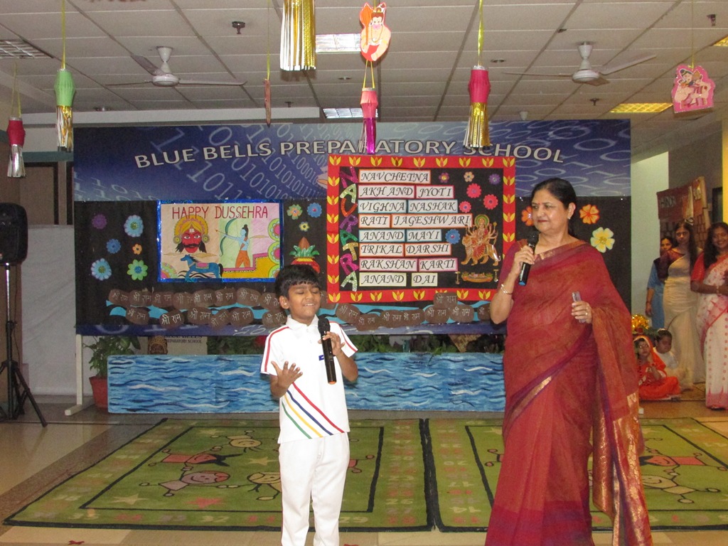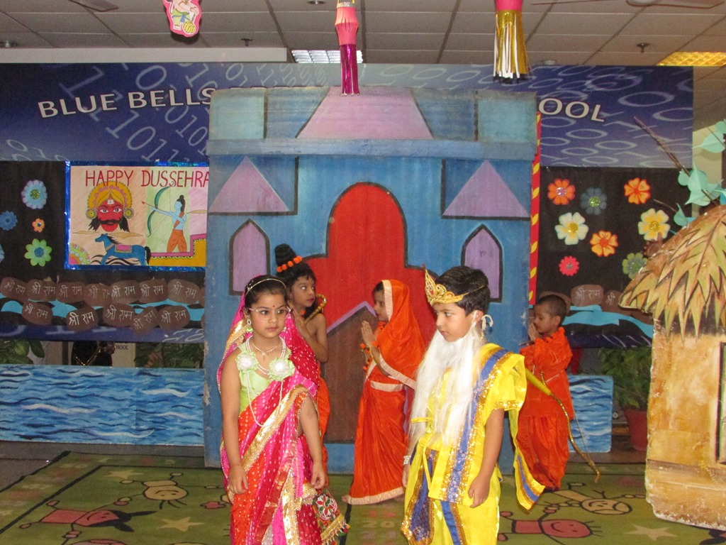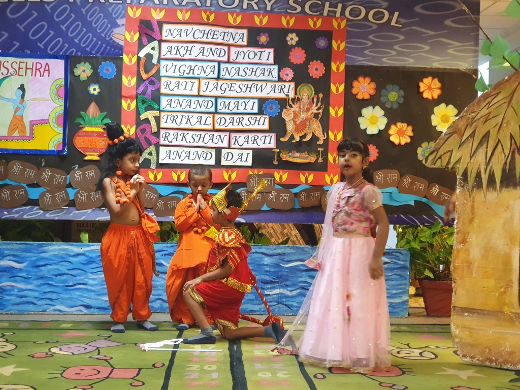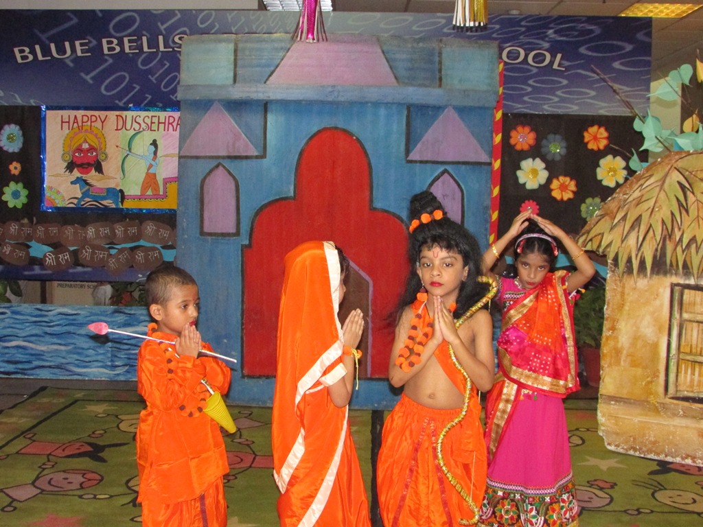 Dussehra festival was celebrated with great fervour and enthusiasm by the students of Blue Bells Preparatory School on 30th September 2022. The festival that marks the victory of good over evil was depicted through a well enacted skit by UKG students. The life of Lord Rama and his victory over Ravana was nicely presented by the young ones. A melodious rendition “Aaya Dussehra Khushi manao” was sung by the little ones. A rhythmic and vibrant dance ‘Dandia’ was performed that truly enthralled the audience.