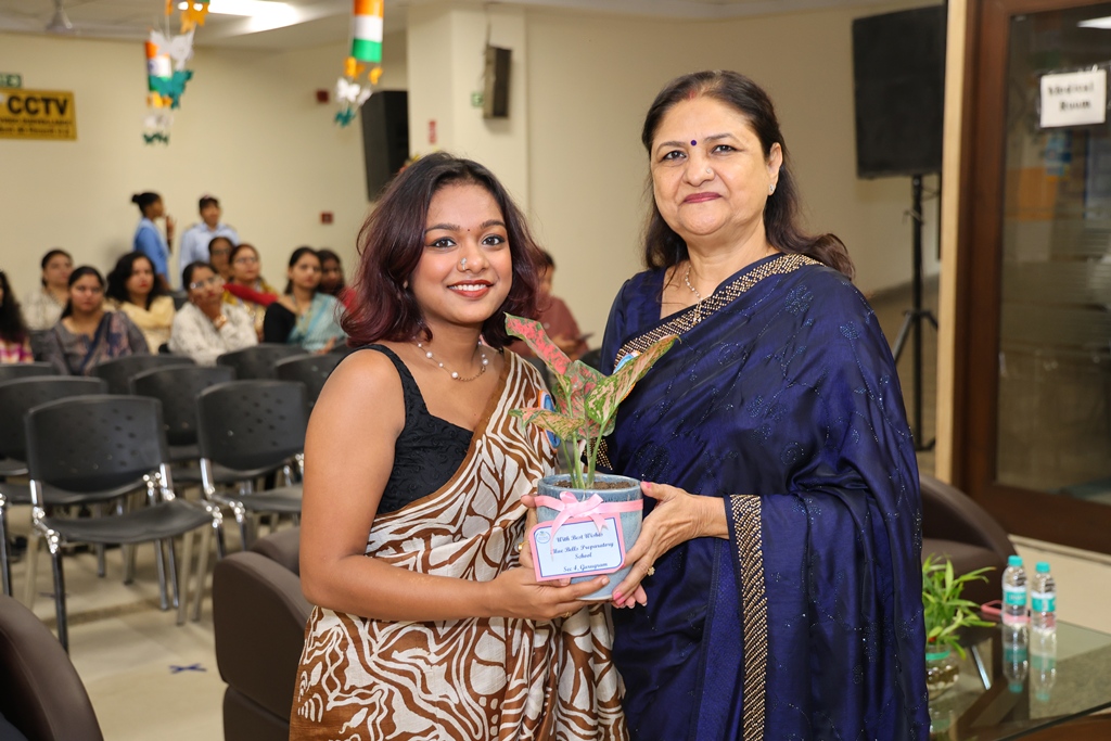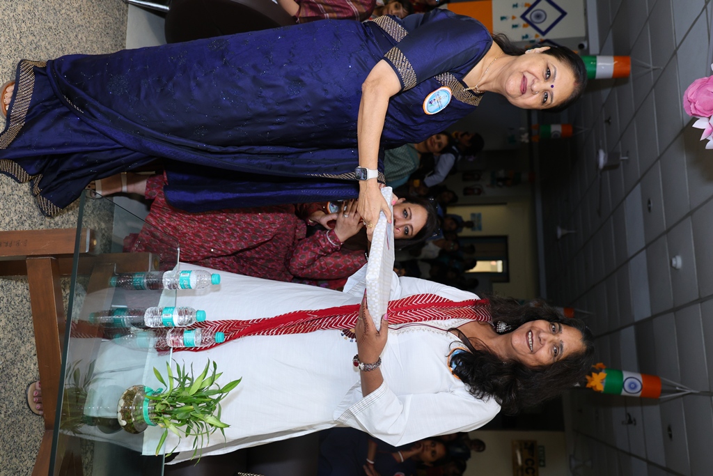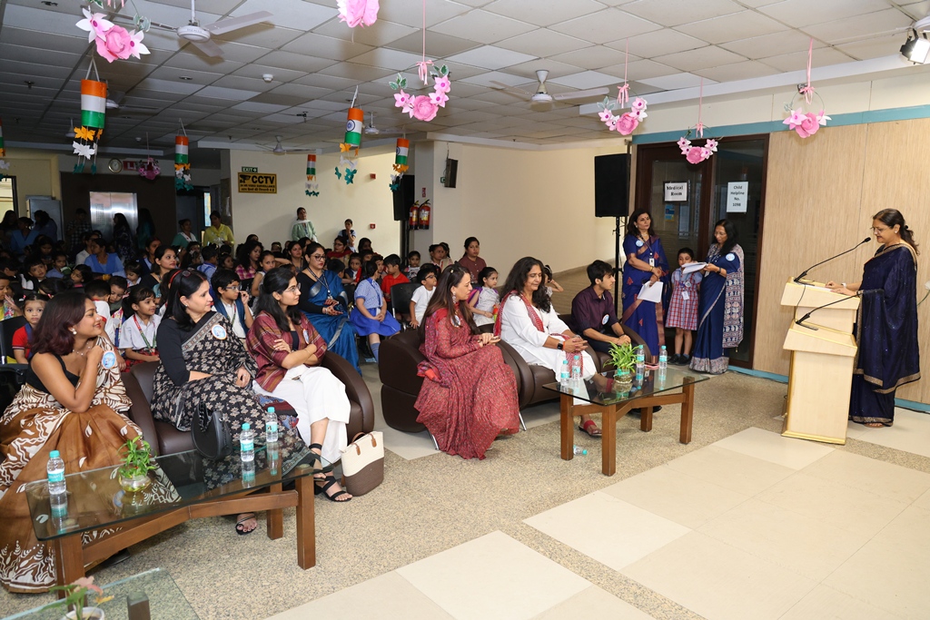 The programme commenced with the traditional Diya Lighting ceremony by the distinguished guests followed by Saraswati Vandana and a dance performance by the students. Dr. Saroj Suman Gulati, Honourable Founder Director, Blue Bells Group of Schools, graced the occasion with her benign presence. She applauded the hard work and creativity of the young students who made all efforts to bring forth the vision of Bharat@2047, in such a vibrant and creative manner.