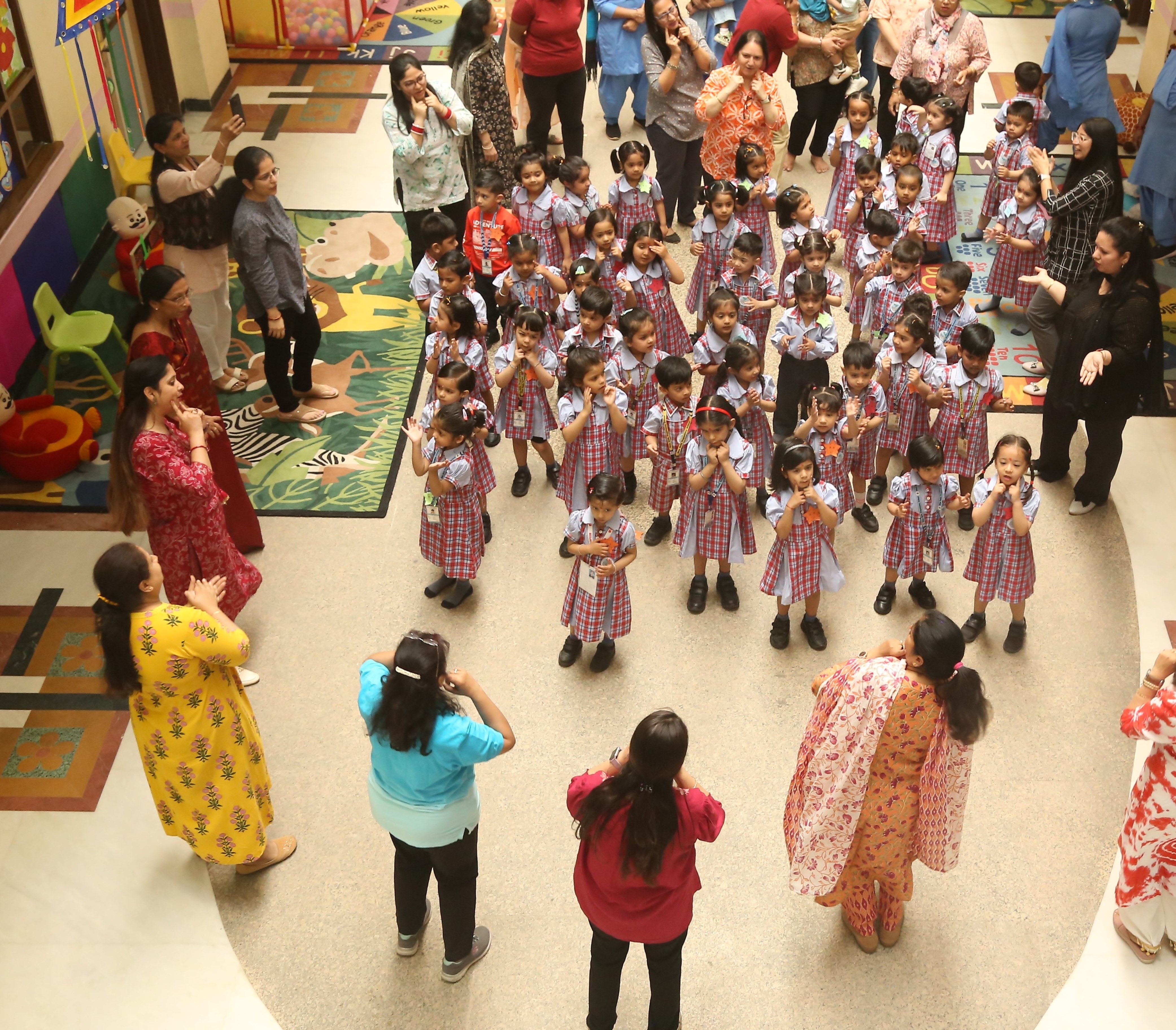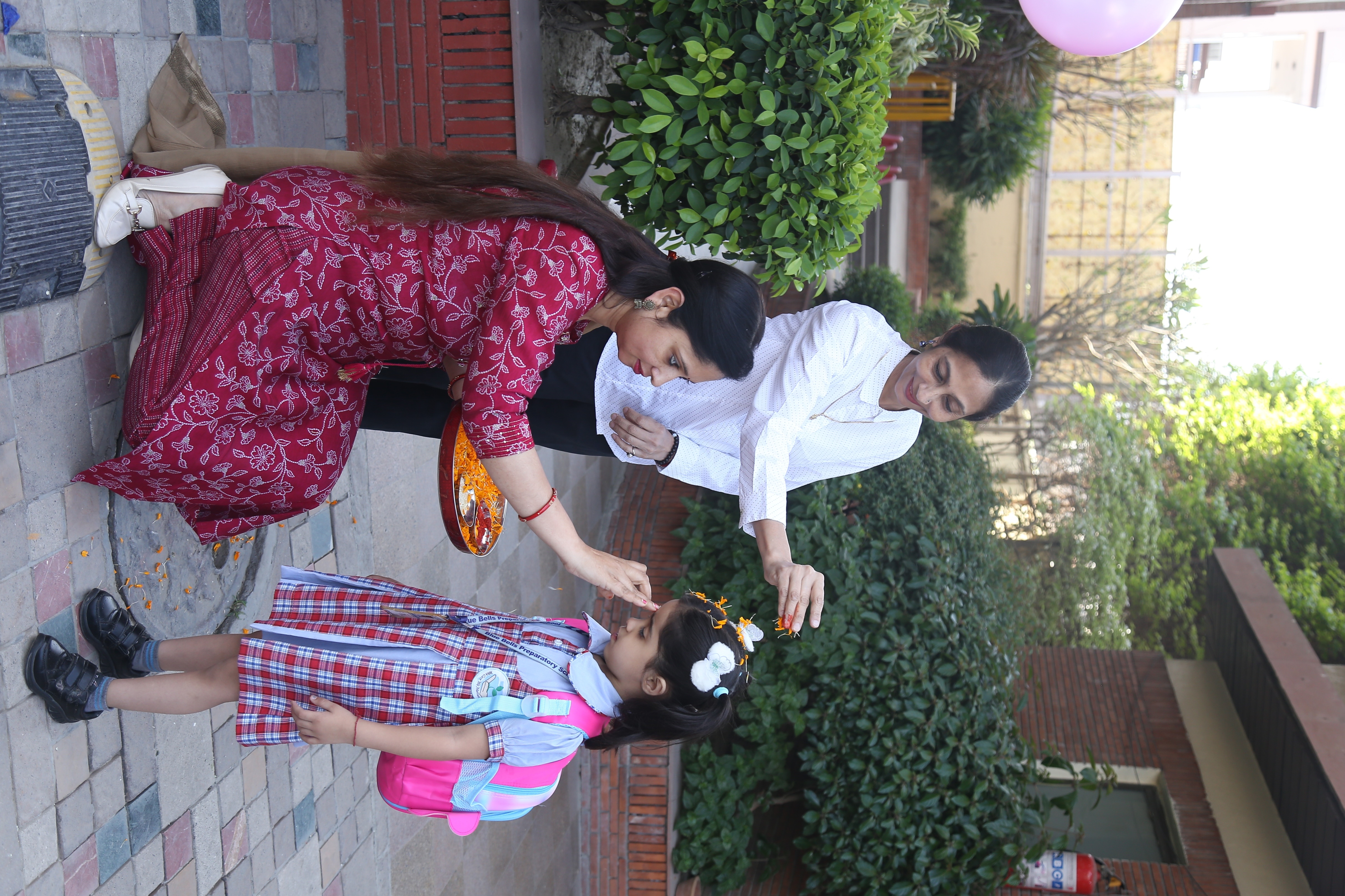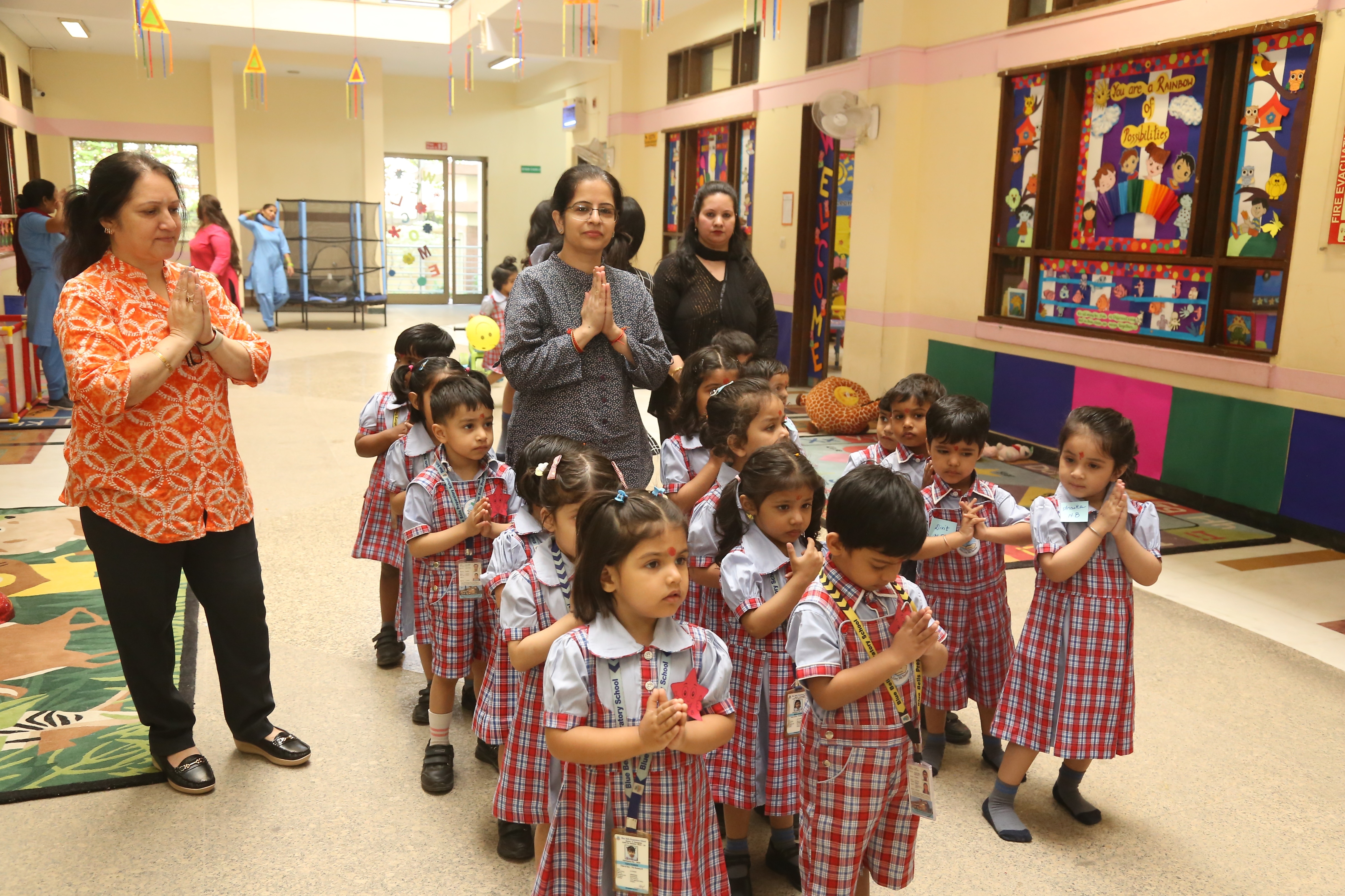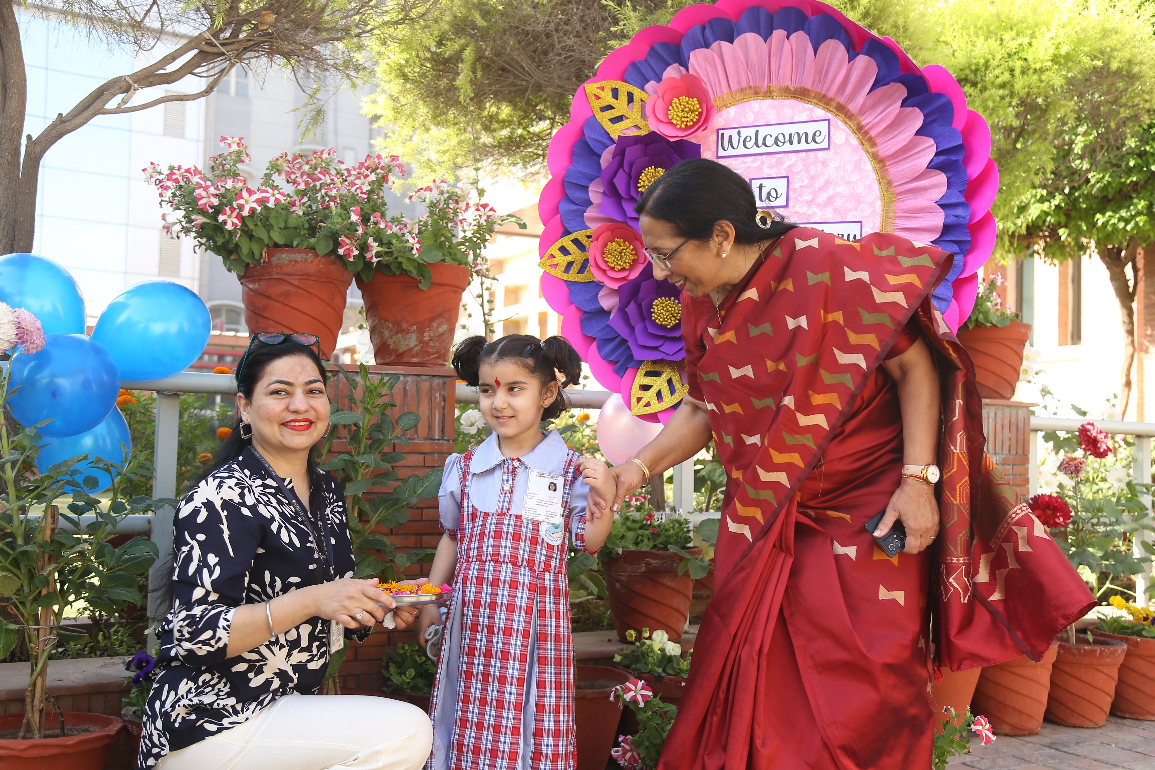 The tiny tots of Playgroup and Pre-Primary, stepped into the school with bright smiles and were given a warm welcome on their first day of the new Academic Session 2024-25. They were greeted with a ‘tilak’ at the entrance gate. The school premises was decked up with colorful balloons and the atmosphere was made comfortable and upbeat for the children. The teachers made their day enjoyable by organizing interesting activities in the form of stories, rhymes, dance, playing with them in ball pool, trampoline, etc. They were overwhelmed when their pics were clicked at the selfie booth. At the end of the day beautiful takeaways were presented to each child. It was an amazing experience to see the lovely smiling faces beaming with joy!