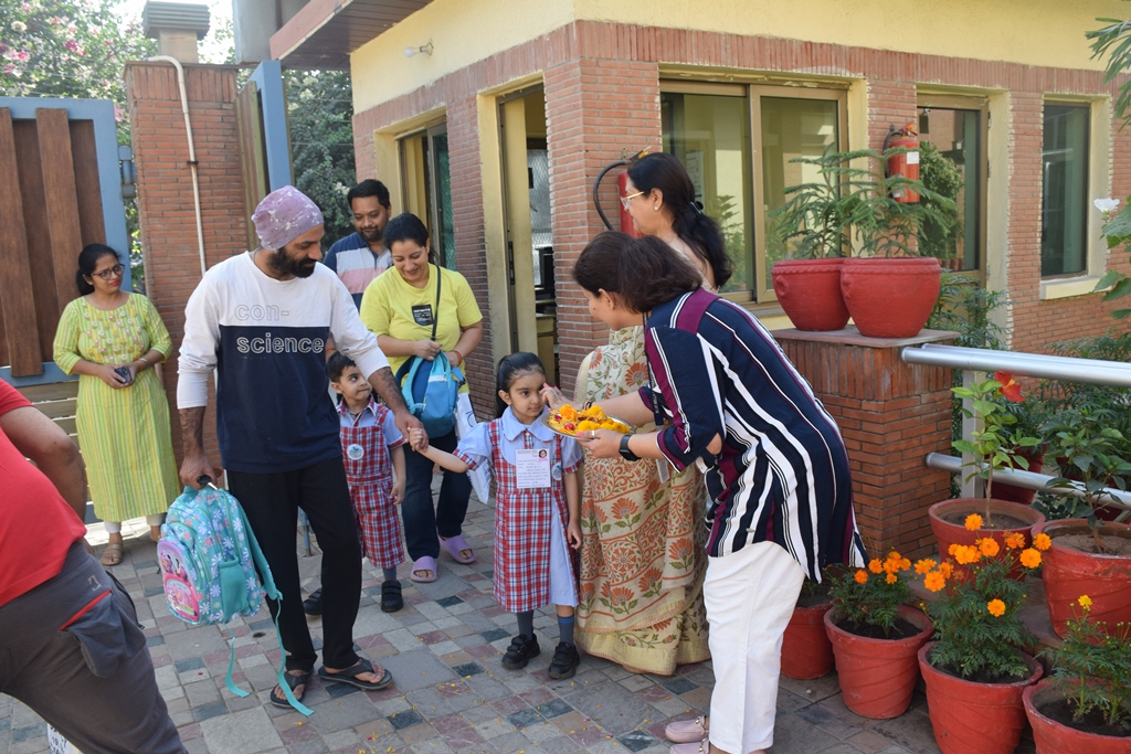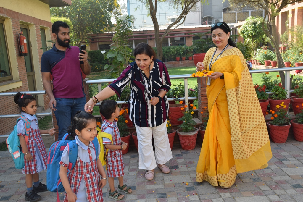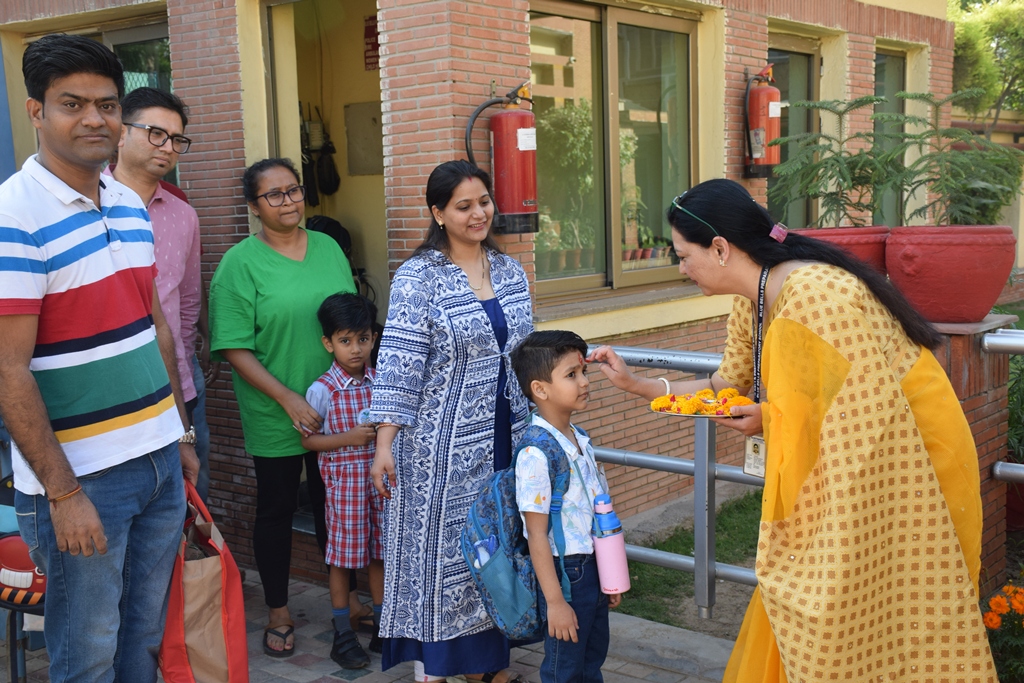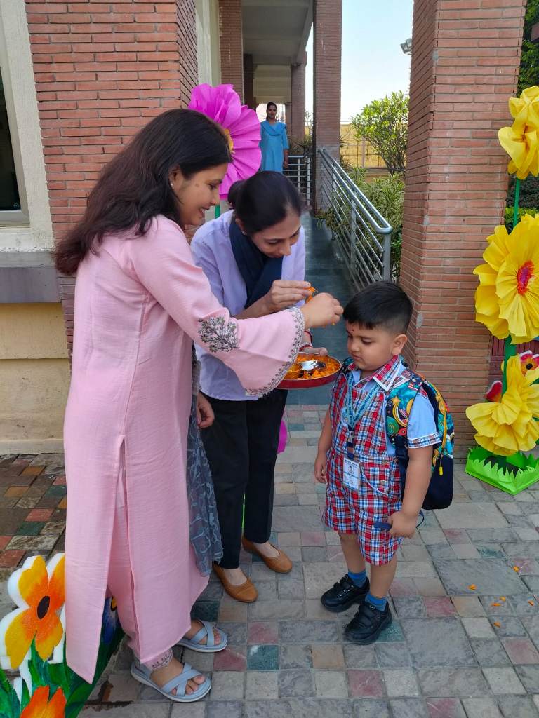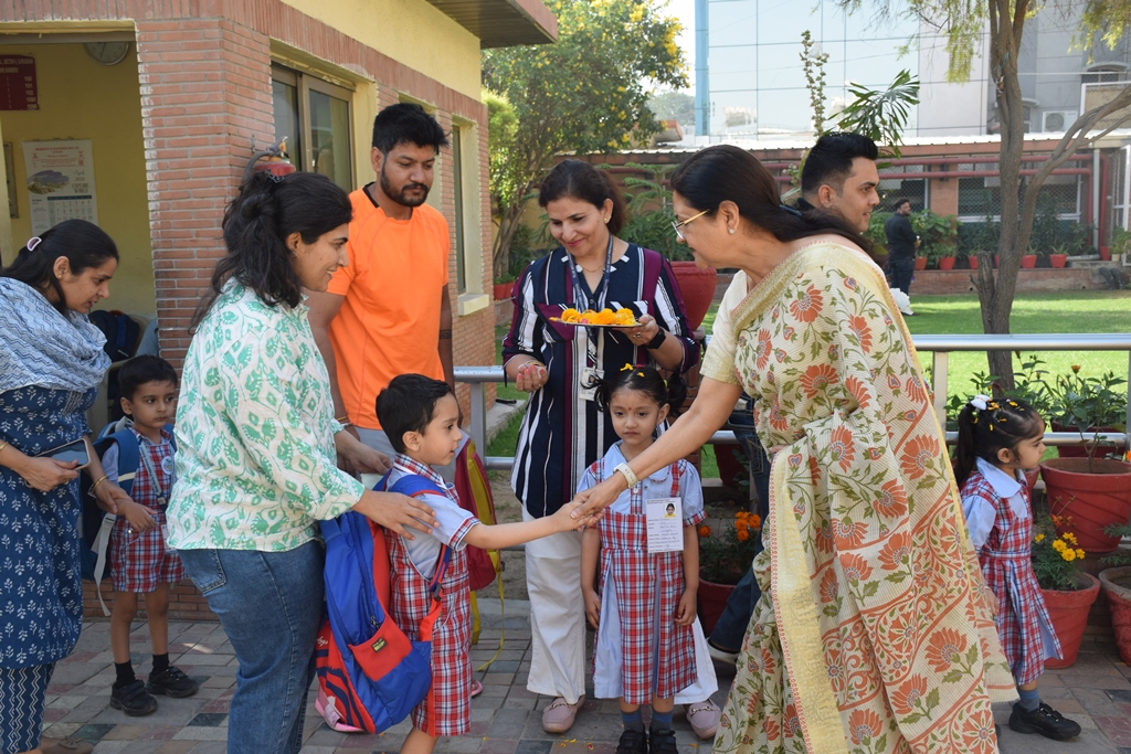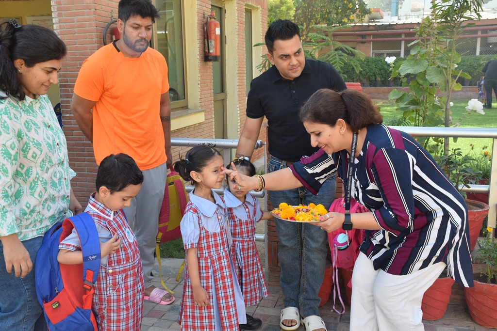 The start of a new session is always a time filled with excitement. The tiny tots of Playgroup, Nursery and LKG, stepped into the school with bright smiles and were given a warm welcome on their first day of the new Academic Session 2025-26. They were greeted with a ‘tilak’ at the entrance gate. The school premises was decked up with colorful balloons and the atmosphere was made comfortable and cozy for the children. The teachers made their day enjoyable by organizing interesting activities in the form of stories, rhymes, dance, playing with them in ball pool, trampoline, etc. They were overwhelmed when their pics were clicked at the selfie booth. At the end of the day beautiful takeaways were presented to each child. It was an amazing experience to see the lovely smiling faces beaming with joy!