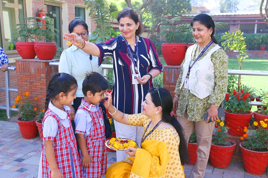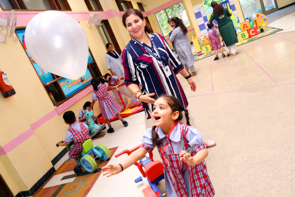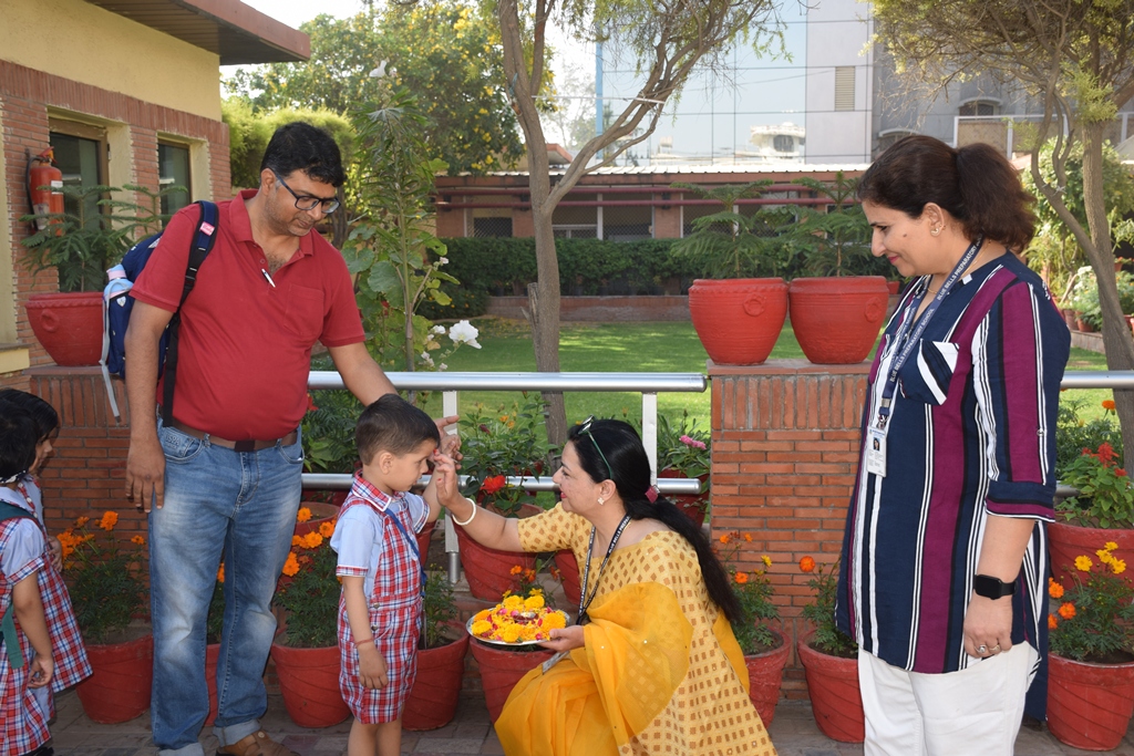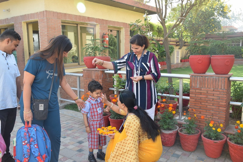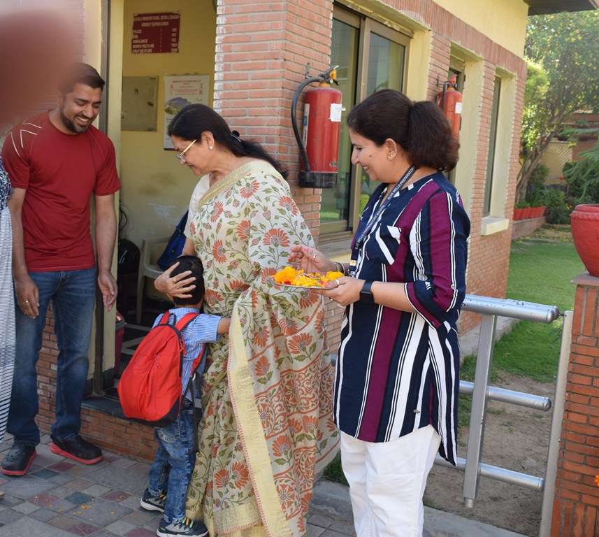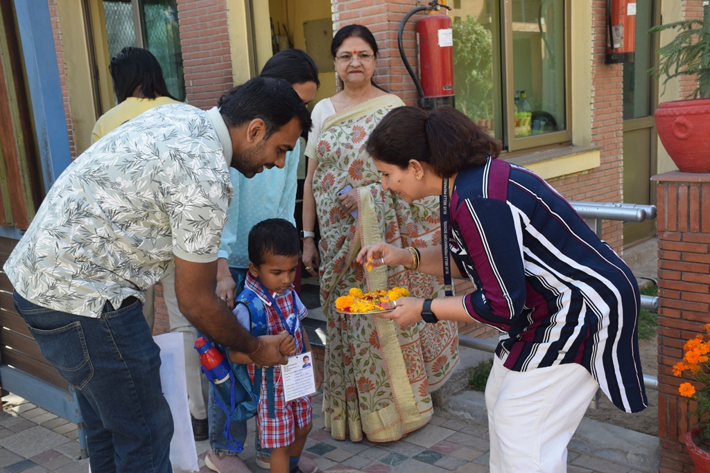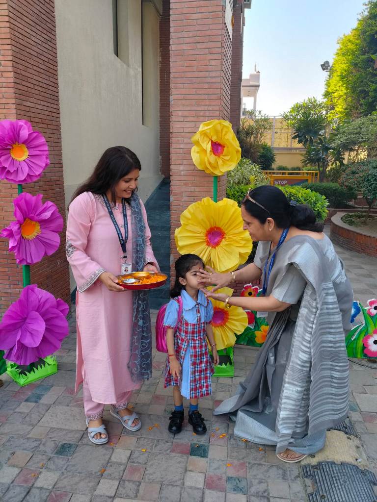 The start of a new session is always a time filled with excitement. The tiny tots of Playgroup, Nursery and LKG, stepped into the school with bright smiles and were given a warm welcome on their first day of the new Academic Session 2025-26. They were greeted with a ‘tilak’ at the entrance gate. The school premises was decked up with colorful balloons and the atmosphere was made comfortable and cozy for the children. The teachers made their day enjoyable by organizing interesting activities in the form of stories, rhymes, dance, playing with them in ball pool, trampoline, etc. They were overwhelmed when their pics were clicked at the selfie booth. At the end of the day beautiful takeaways were presented to each child. It was an amazing experience to see the lovely smiling faces beaming with joy!