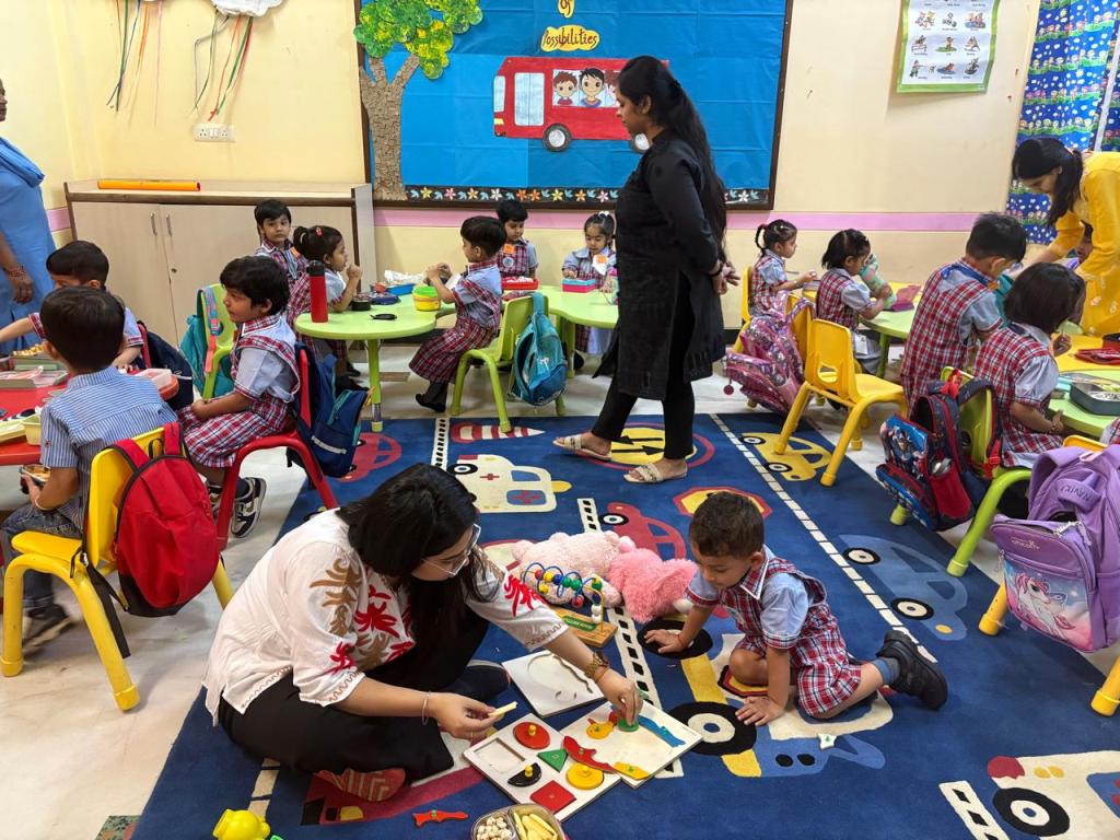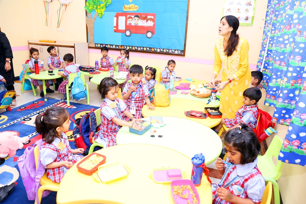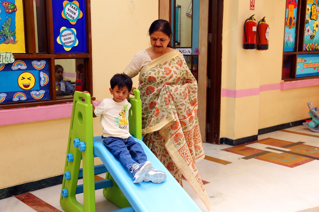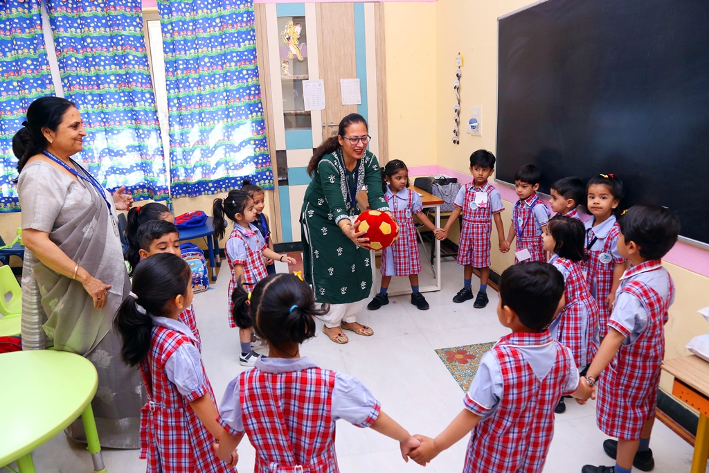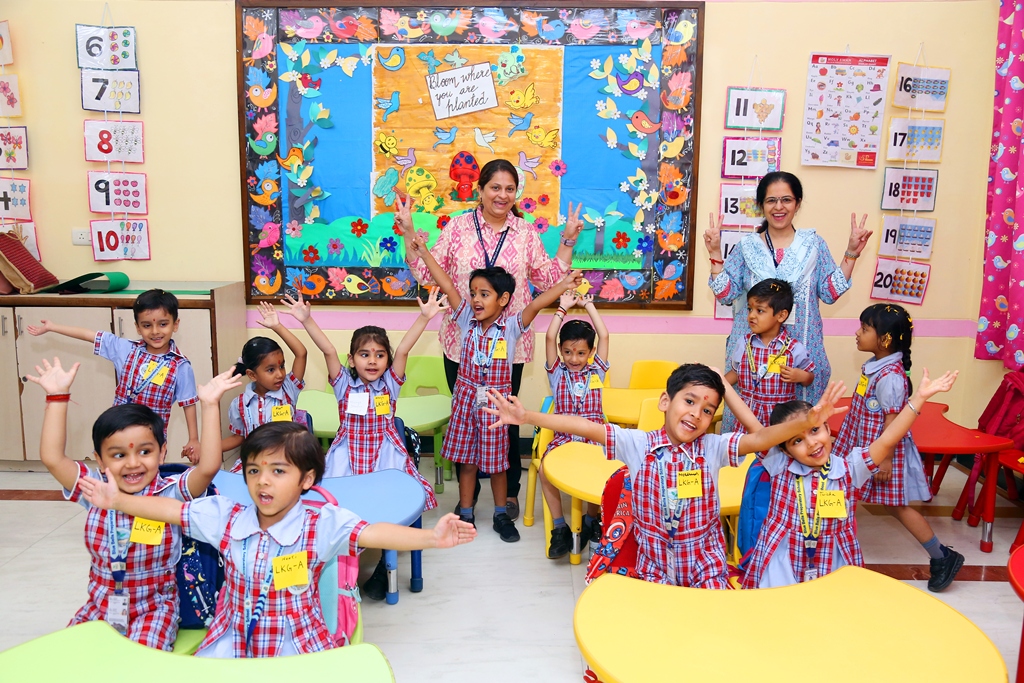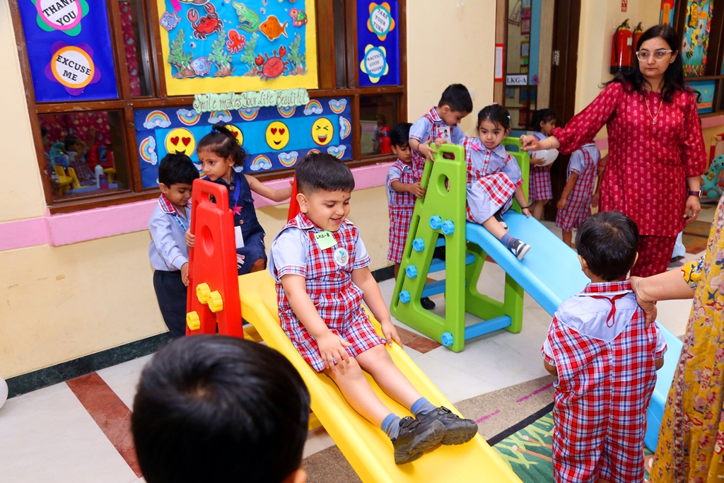 The start of a new session is always a time filled with excitement. The tiny tots of Playgroup, Nursery and LKG, stepped into the school with bright smiles and were given a warm welcome on their first day of the new Academic Session 2025-26. They were greeted with a ‘tilak’ at the entrance gate. The school premises was decked up with colorful balloons and the atmosphere was made comfortable and cozy for the children. The teachers made their day enjoyable by organizing interesting activities in the form of stories, rhymes, dance, playing with them in ball pool, trampoline, etc. They were overwhelmed when their pics were clicked at the selfie booth. At the end of the day beautiful takeaways were presented to each child. It was an amazing experience to see the lovely smiling faces beaming with joy!
