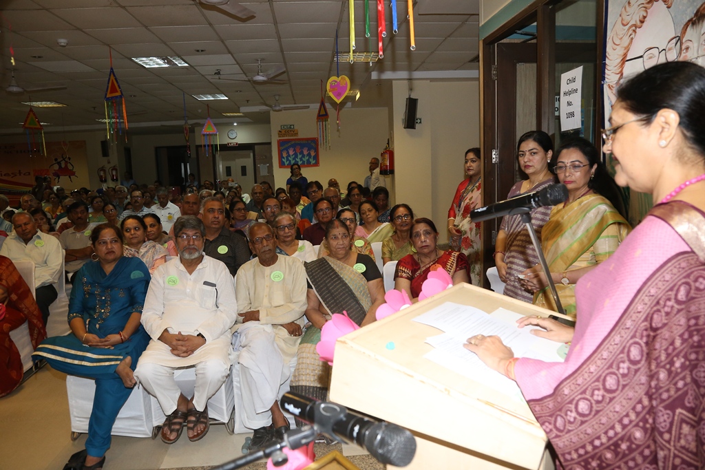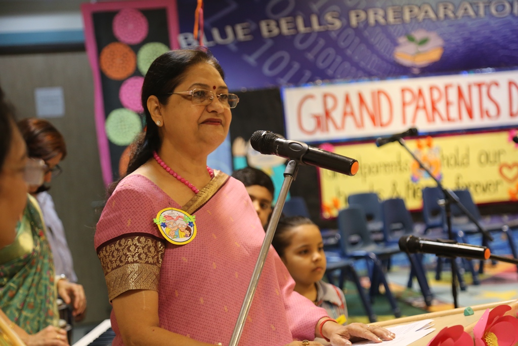 Dr. Saroj Suman Gulati, the Founder Director, Blue Bells Group of Schools graced the occasion and wished all the grandparents on this very special day and addressed them with her words of wisdom. She also honoured the meritorious students for bringing laurels and coveted OVER ALL TROPHY for the school in an Inter School Competition held at Suncity School.
