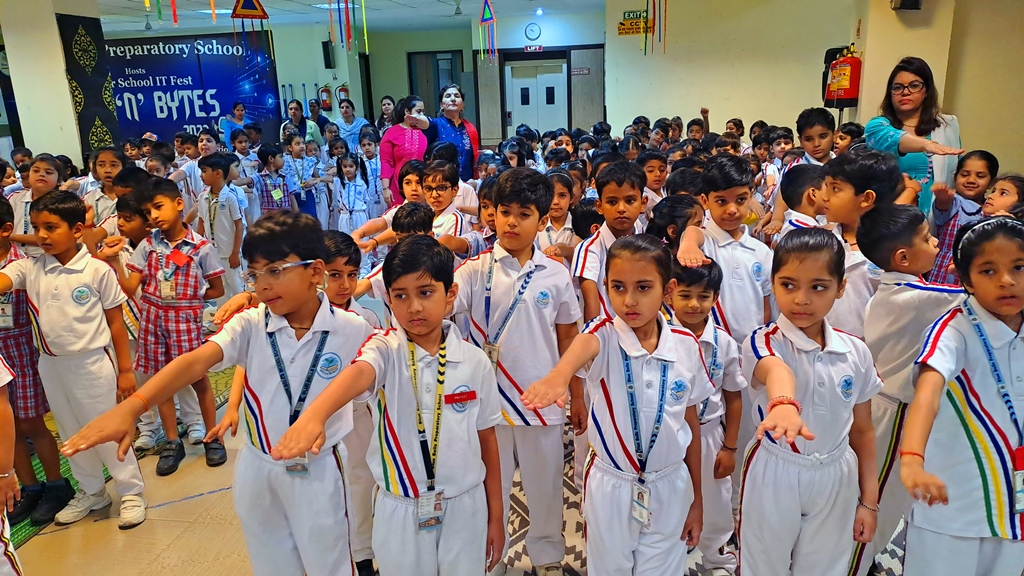 The celebration commenced with a floral offering to the great leader and visionary, followed with a rendition of soulful Bhajans by the students of classes I and II.