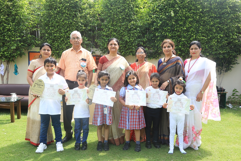 The Headmistress, Mrs. Anu Sehgal honoured the winners of the Inter School Competition held at Manav Rachna International School by giving away the prizes to them. She applauded their efforts for exhibiting such stunning performances. The Headmistress Mrs. Anu Sehgal also inspired the students and urged them to contribute to the progress of the nation. The students expressed their sentiments of love for their motherland through a talk.