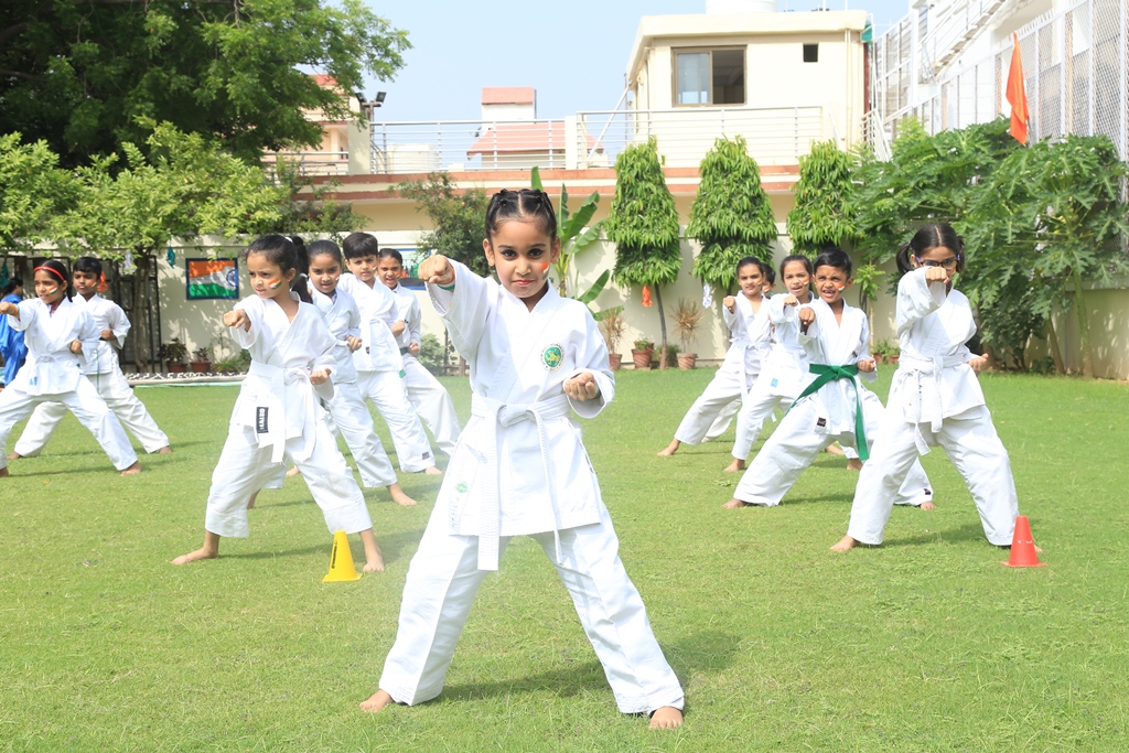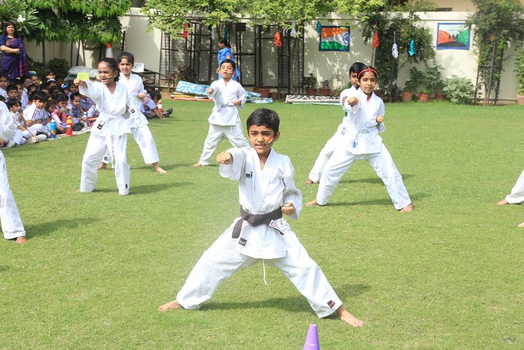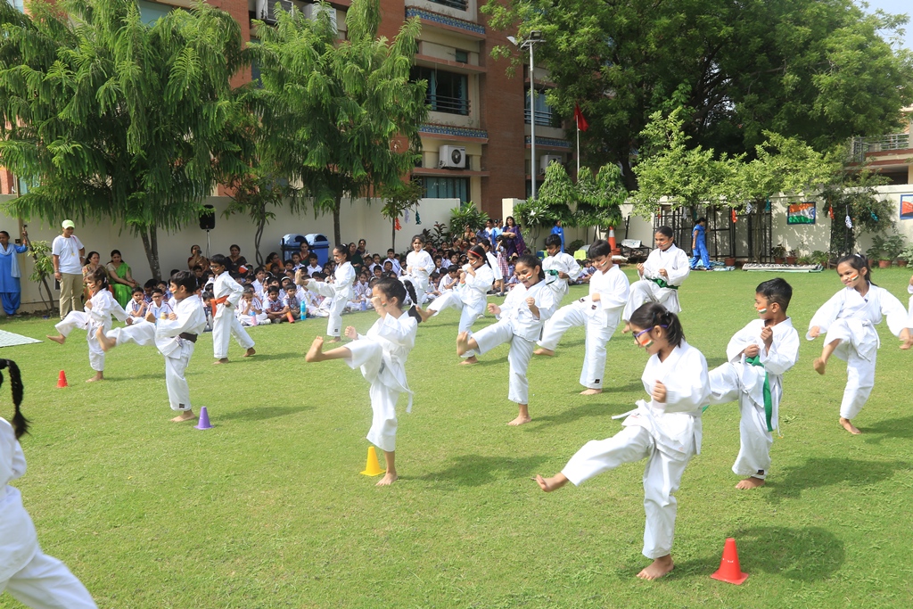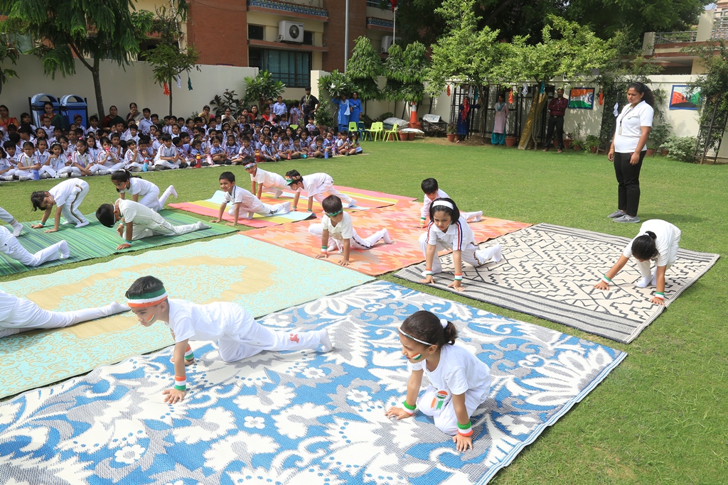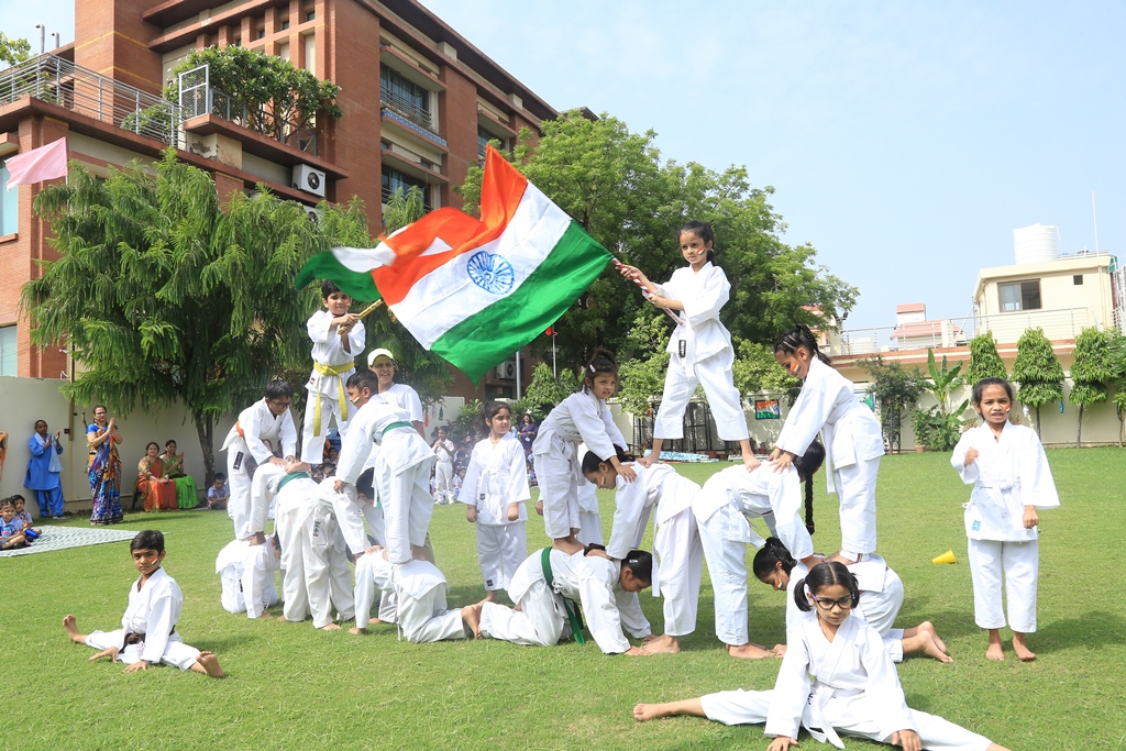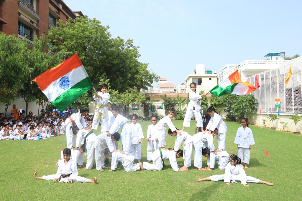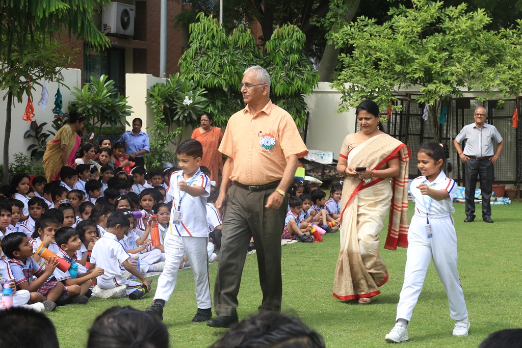 The celebrations began by hoisting the National flag by the Headmistress, Mrs. Anu Sehgal. The spirit of freedom and nationalism was well exhibited by the students through a spectrum of patriotic songs, rhythmic dance performances, display of yogic exercises, presentation of martial arts and synchronized lezim drill performance. Mr. Batra, General Manager, Blue Bells Group of Schools graced the occasion as a Special guest and motivated the students to be confident and responsible citizens of the country.
