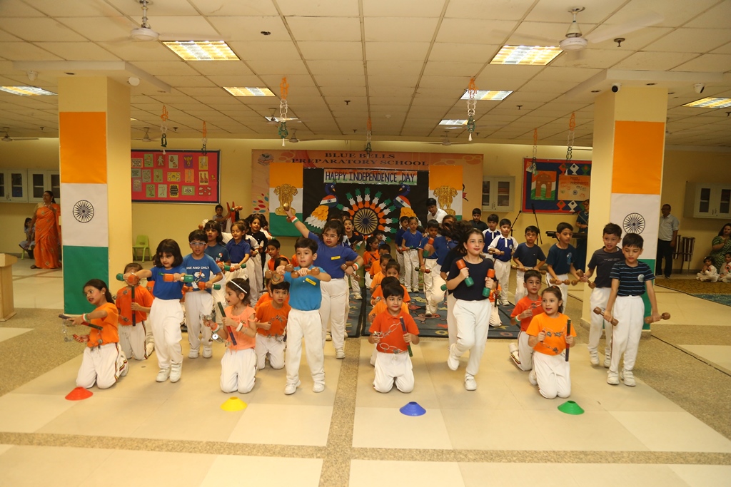 The celebrations began by hoisting the National flag by the Revered Chief Guest, Mr. Ashish Gulati, Vice Chairman, Blue Bells Group of Schools. The students expressed their sentiments of love for their motherland through a talk. The true colours of freedom was well exhibited by the students through a spectrum of patriotic songs and poem, aerobics, synchronized fusion of dumbbell-lezim drill and stupendous dance performances, showcasing the rich culture of our country.
