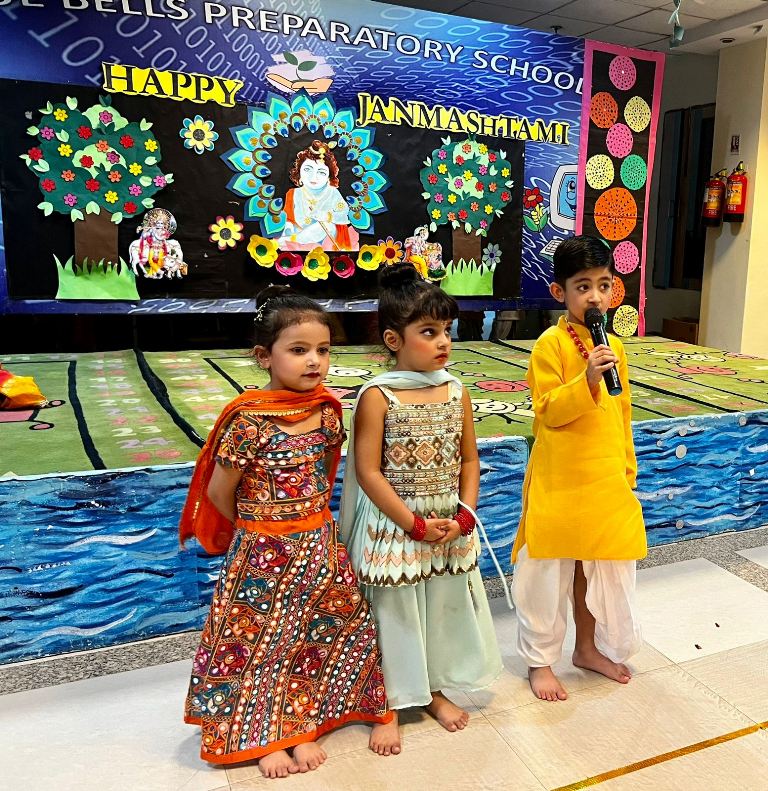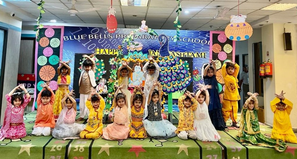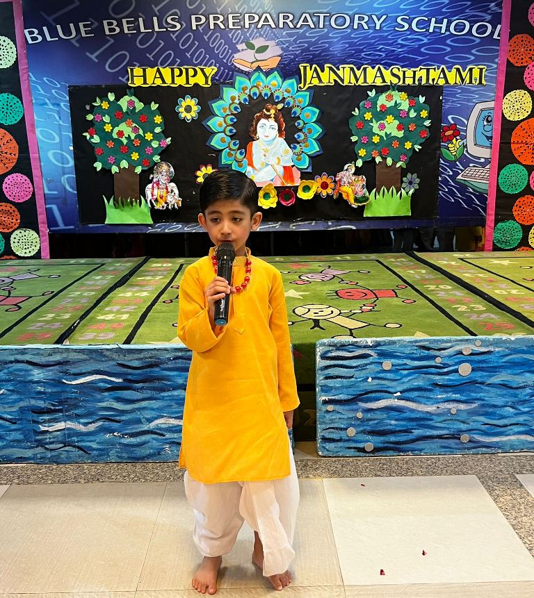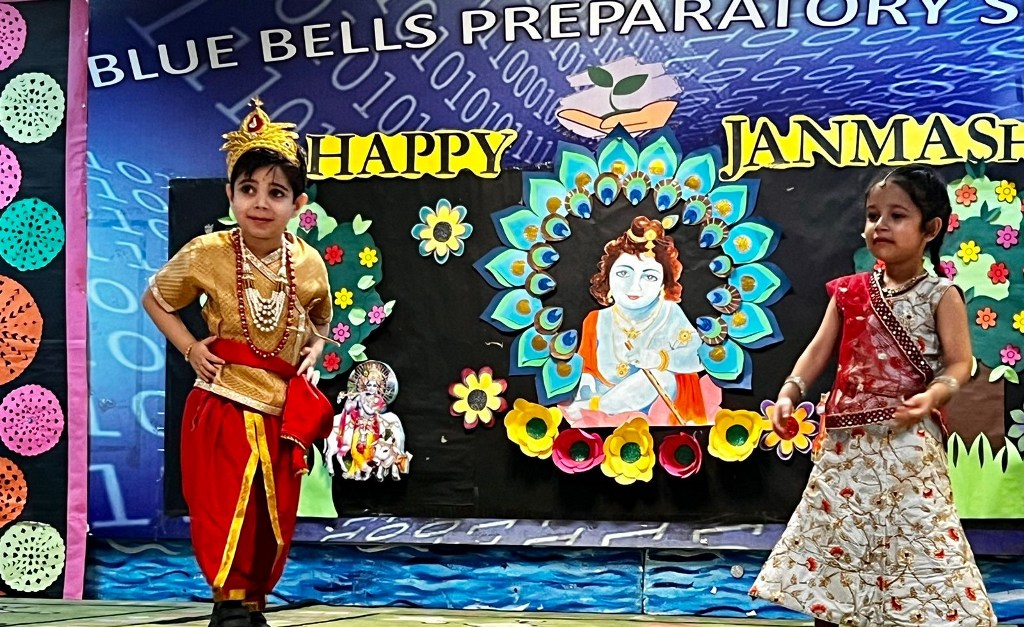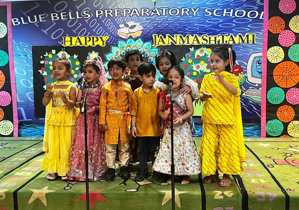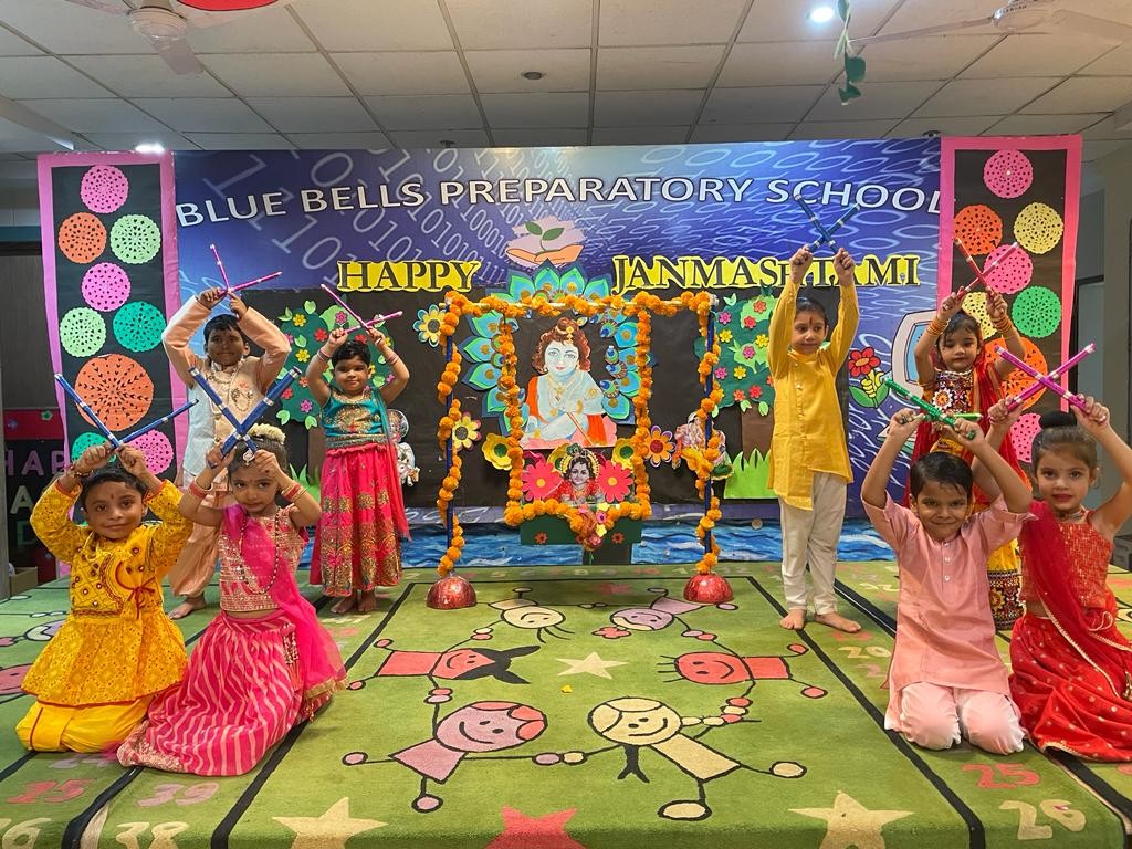 The vibrant festival of Janmashtami was celebrated with great enthusiasm and fervor in Blue Bells Preparatory School on September 4th, 2023. This auspicious occasion marked the birth anniversary of Lord Krishna, a deity revered for his divine teachings and playful spirit.