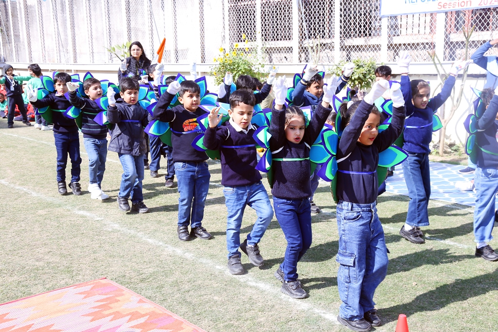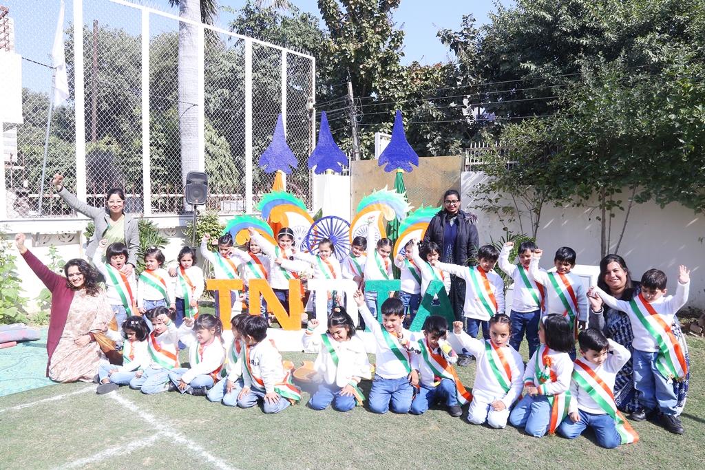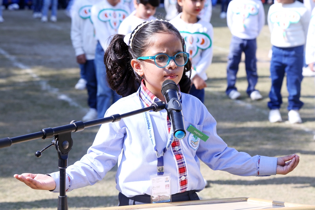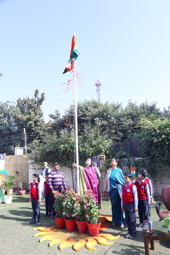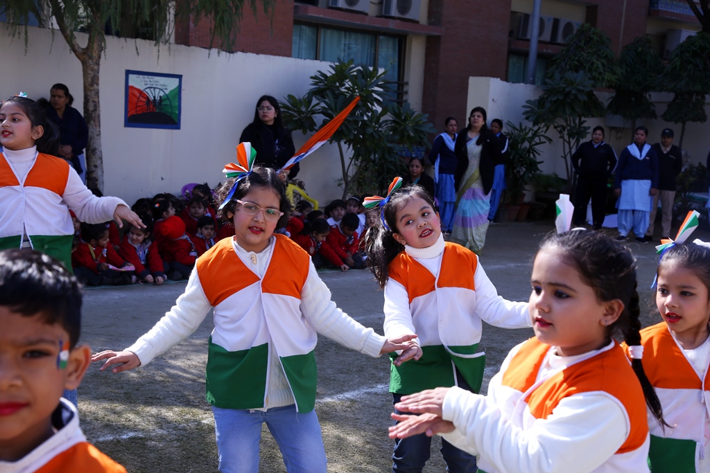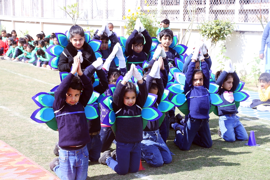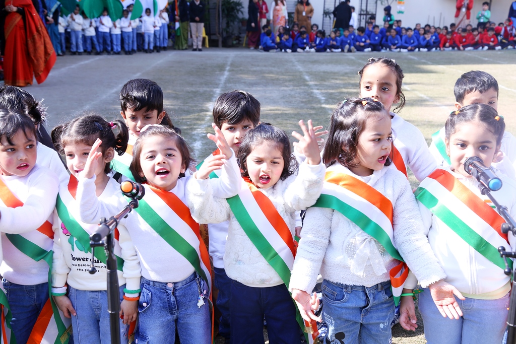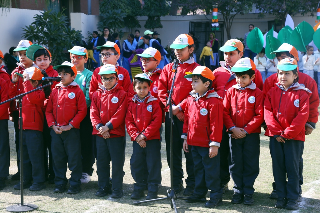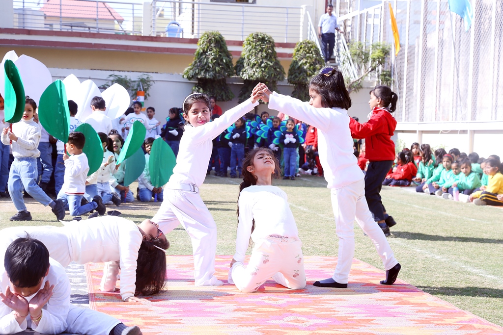 Feeling proud to belong to a glorious nation, the students, from Playgroup to Class II, participated in full strength to present a vibrant cultural programme that showcased their talent, commitment and dedication towards their nation. The students of class II enlightened their fellow mates about the significance of our Constitution and our Tricolor through a talk. The tiny tots of Play group, Nursery and LKG presented an action song and the students of Grades I and II portrayed the true colours of India through a patriotic rendition. The energetic Blue Bellians displayed a perfect synergy of body, mind and soul through a rhythmic drill and a captivating dance performance.
