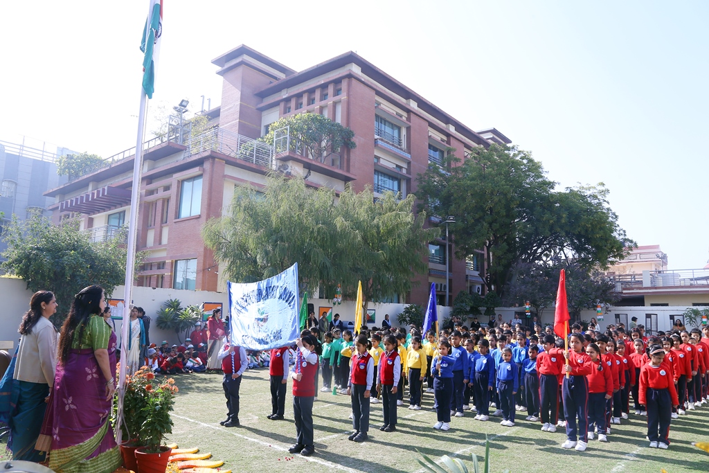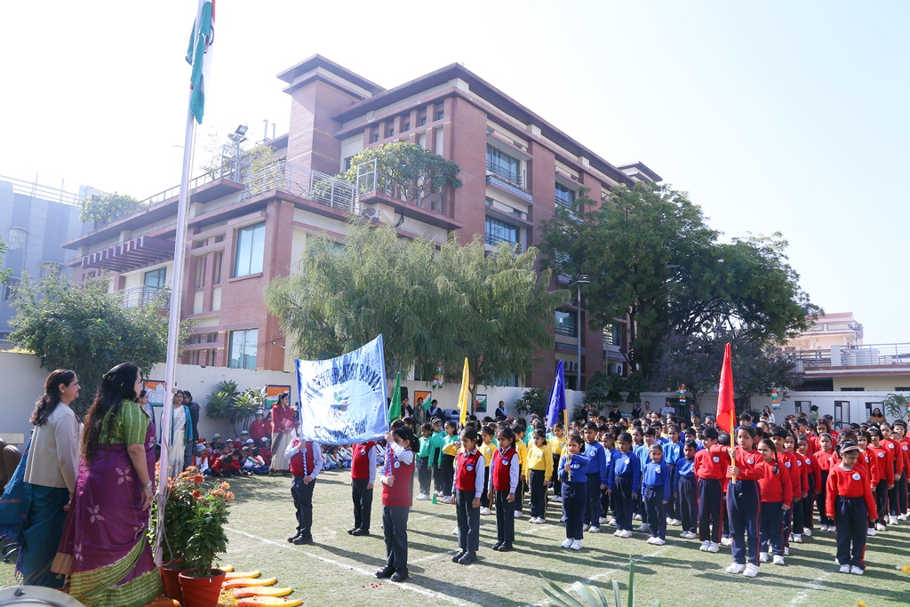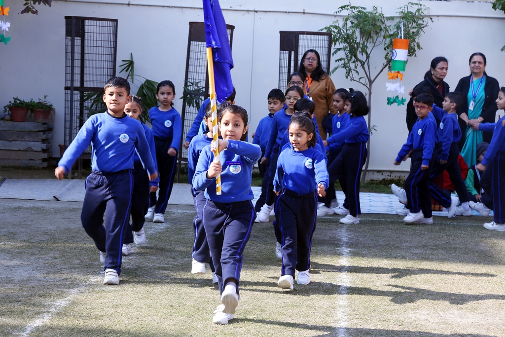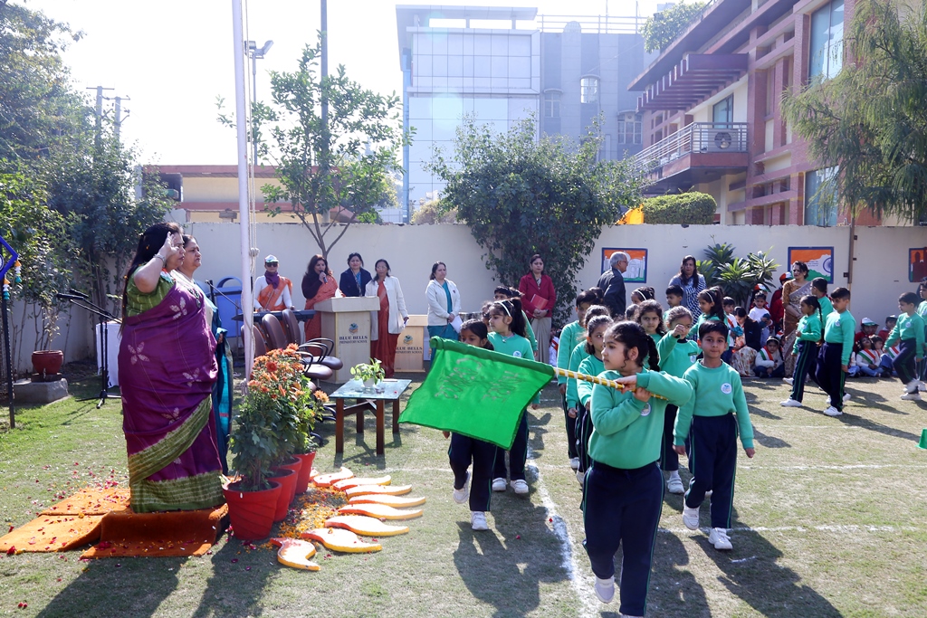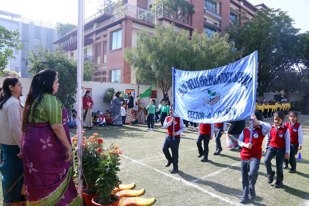 Madam Soumya Gulati, Deputy Director, Academic Development and Innovation, Blue Bells Group of Schools graced the occasion as Chief Guest. Ma’am unfurled the Tricolour on the grounds of Blue Bells Preparatory School followed by a well synchronized March Past by the students of grades I and II.