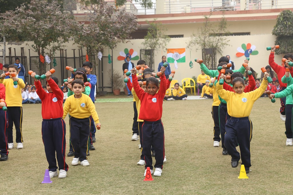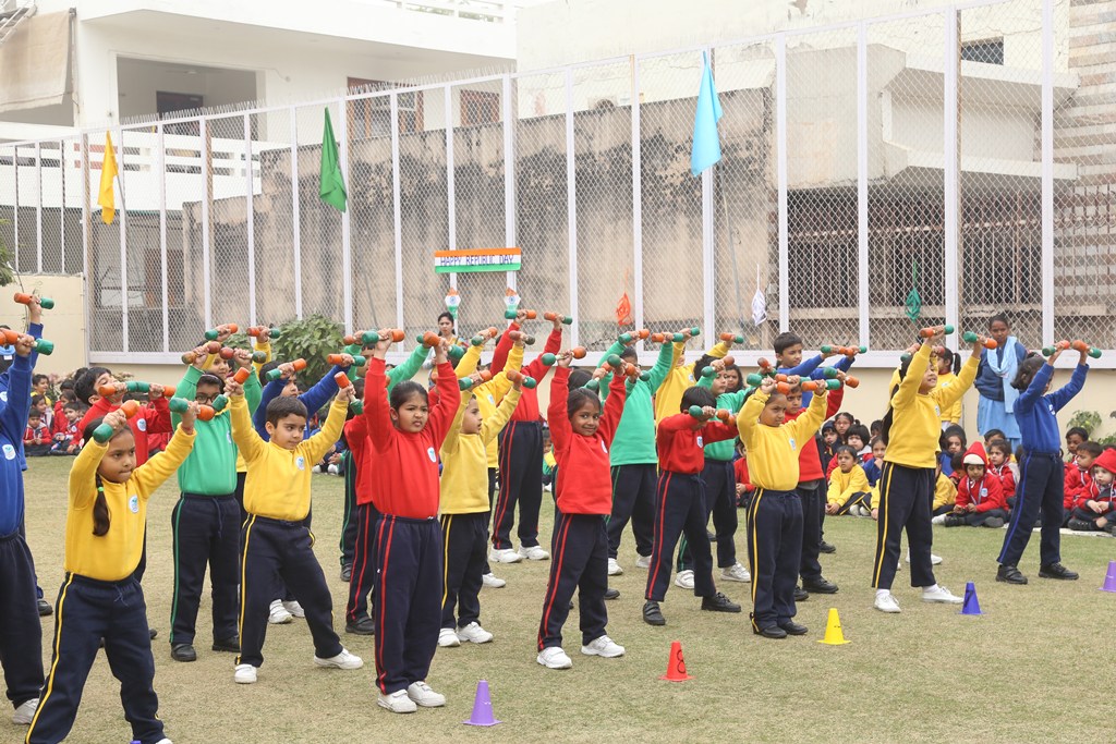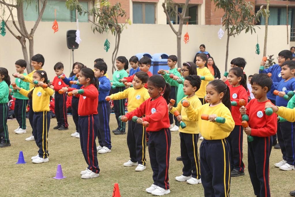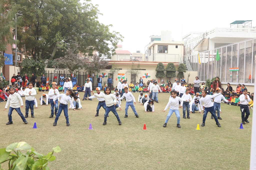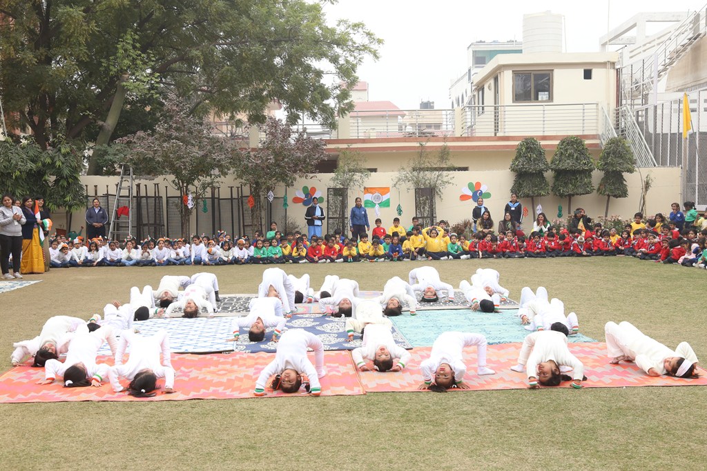 Participating in full strength, the students of classes Nur-II presented a vibrant cultural programme that included a talk, a patriotic action song and group song, yoga, musical rap in praise of our motherland and rhythmic dance.