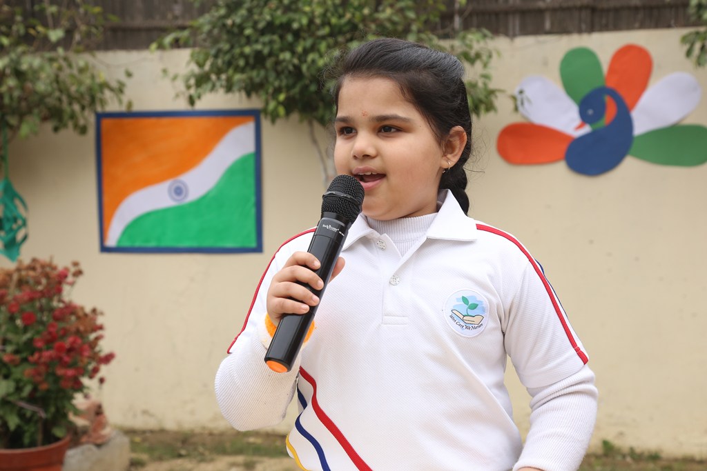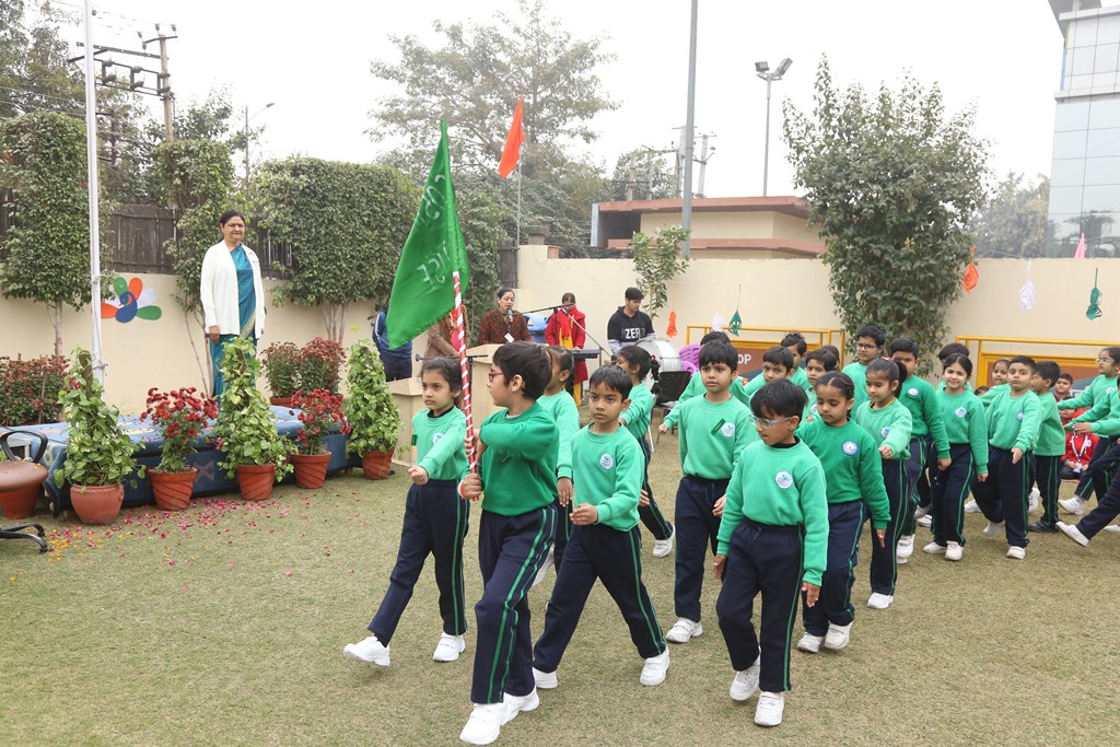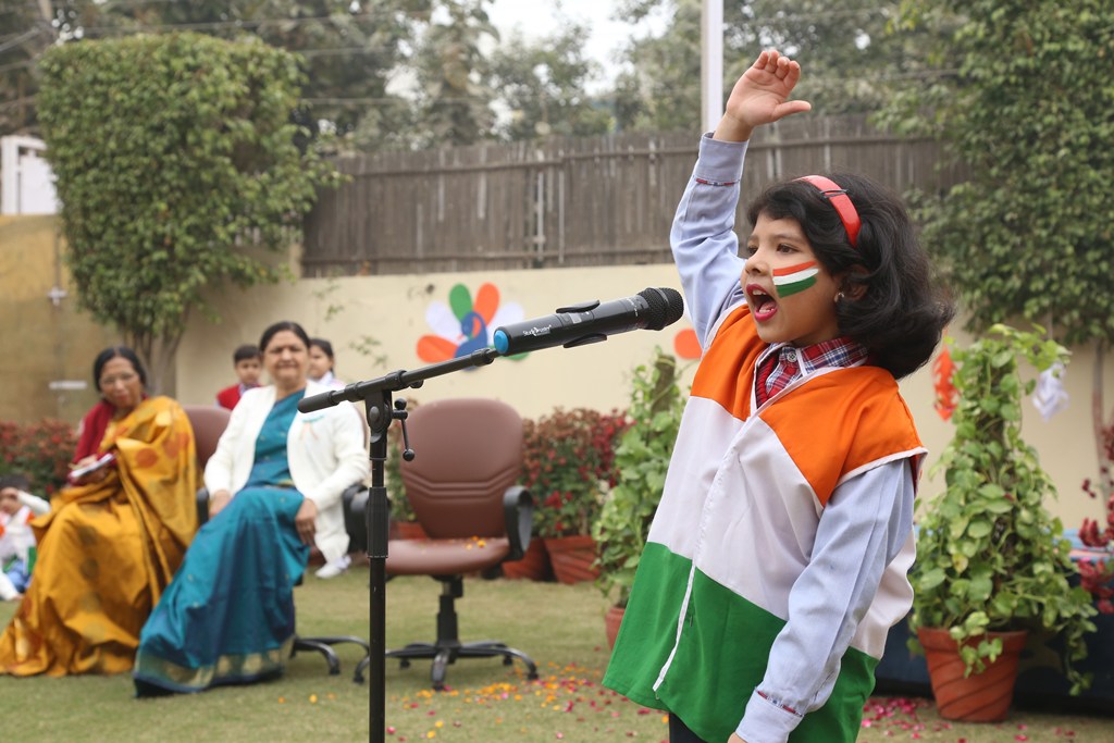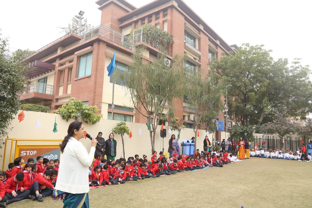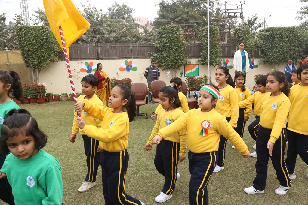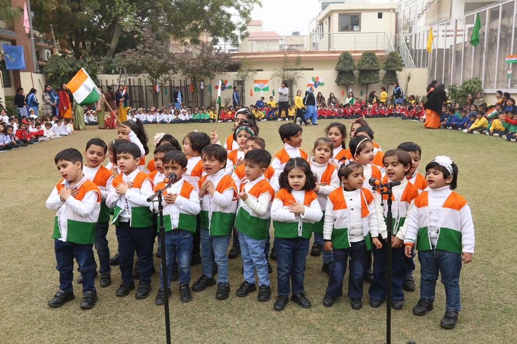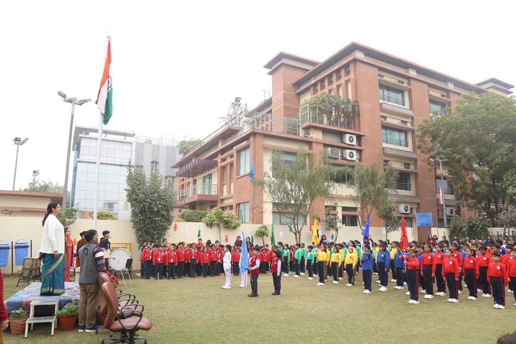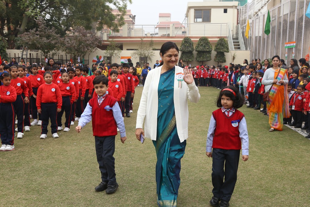 The Headmistress, Mrs. Anu Sehgal, enlightened the students about the significance of our Constitution and our Tricolor. She urged them to be responsible and dedicated towards their duties as a mark of respect for their motherland.