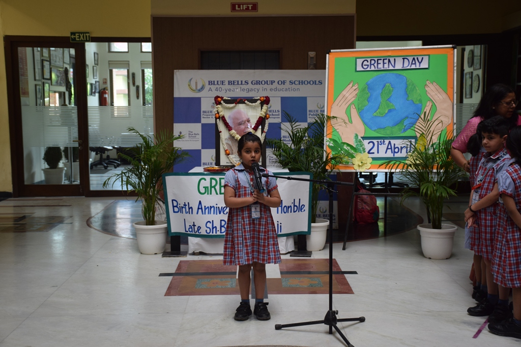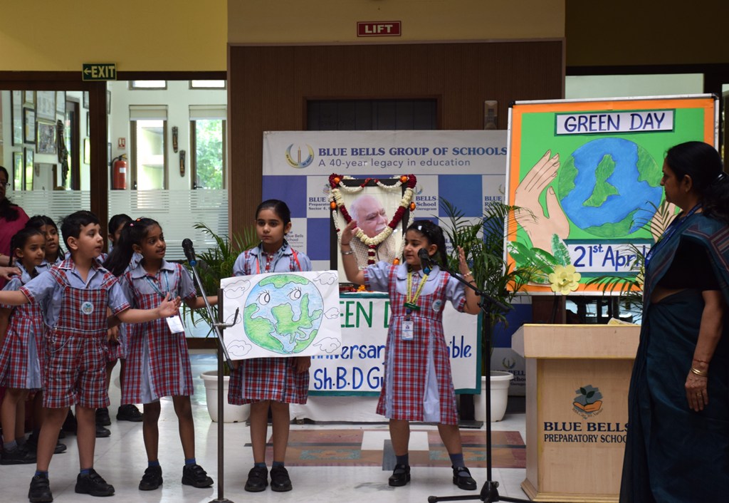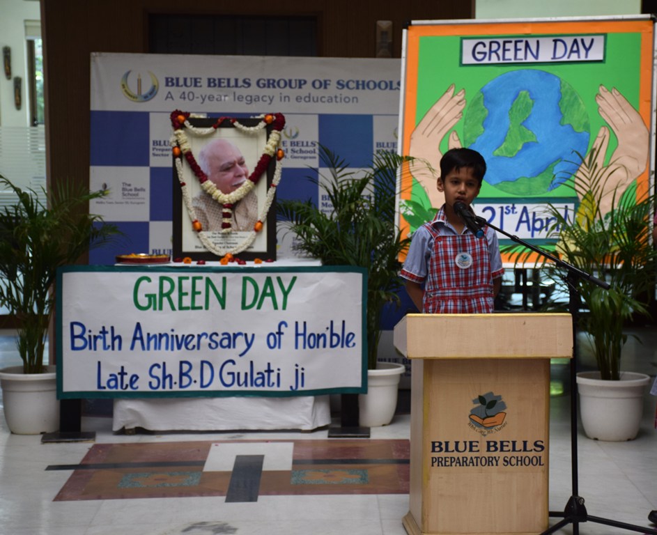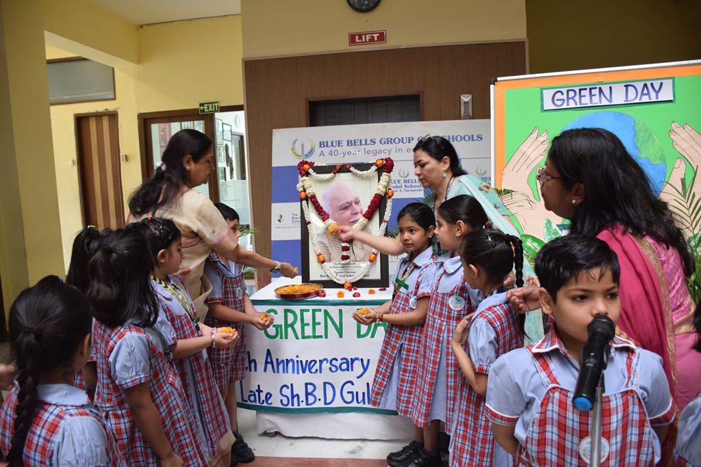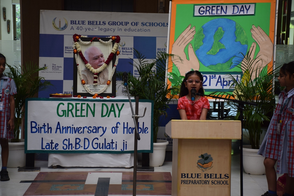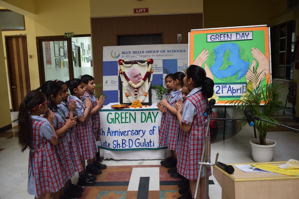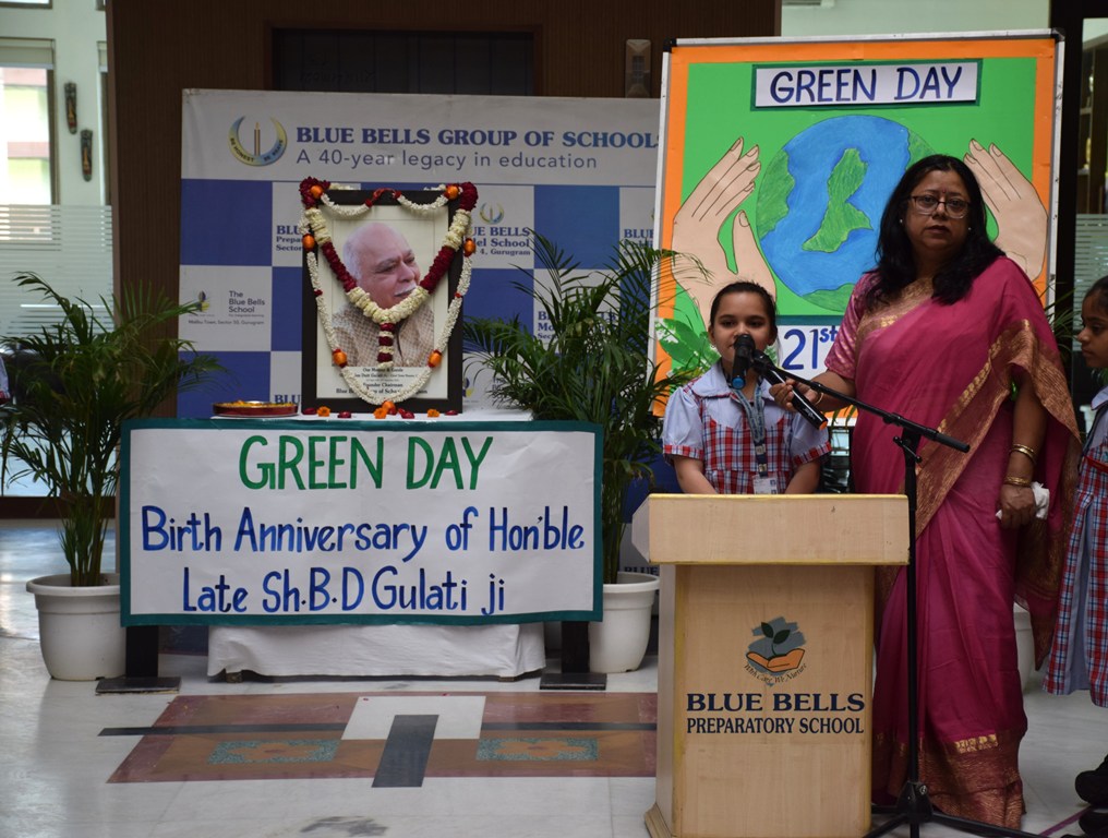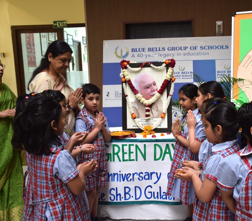 A special assembly was organized on 21st April to commemorate the Birth Anniversary of Late Sh. B.D Gulati ji, Hon’ble Founder Chairperson, Blue Bells Group of Schools, a visionary leader who promoted green environment and advocated sustainability. The Headmistress, staff and students of Grades I and II celebrated this day as ‘Green Day’- a heartfelt tribute to our guiding light whose ideals continue to inspire and uplift us. Sir’s cherished vision of a ‘Clean and Green Gurugram’ and his philosophy ‘Create a greener world before it becomes a fantasy to our next generation’ have inspired each one of us at Blue Bells to take all measures and steps to protect and preserve nature for generations to come.