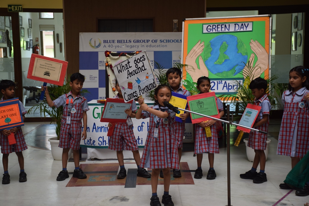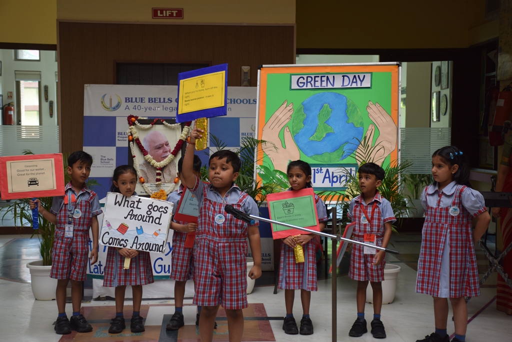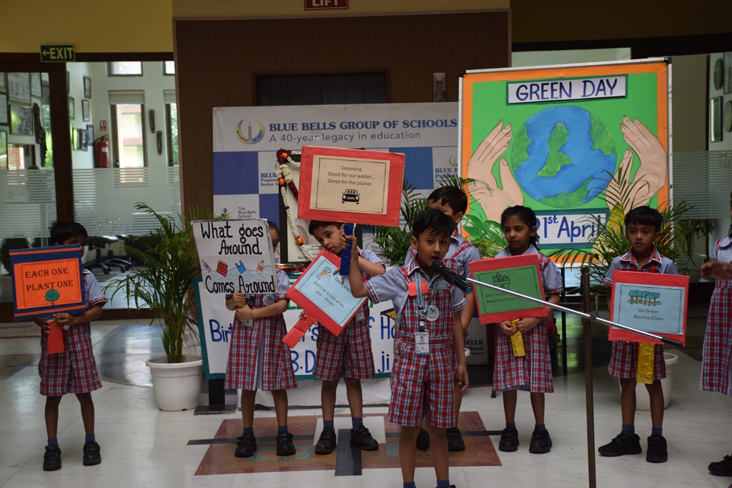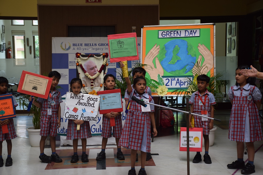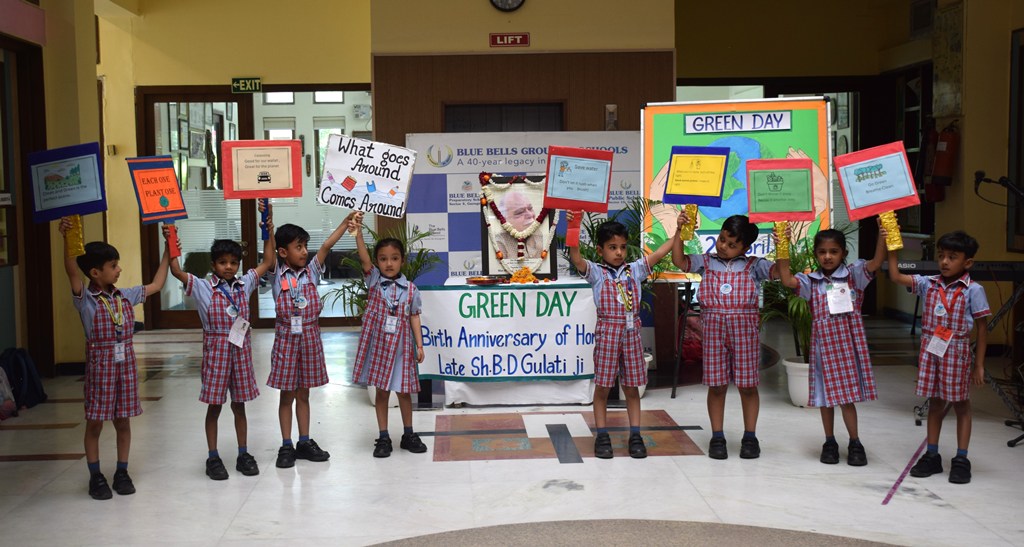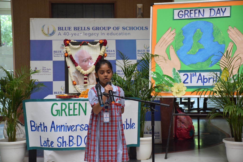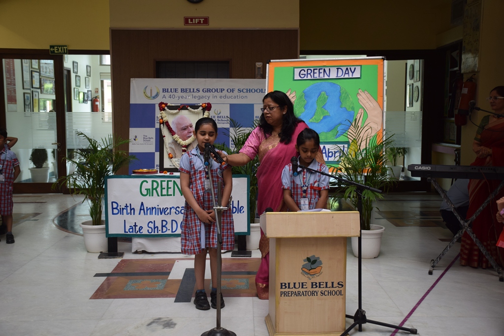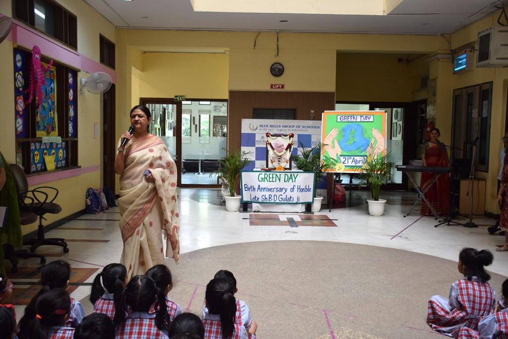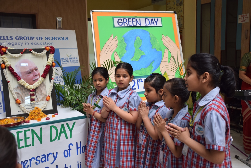 A special assembly was organized on 21st April to commemorate the Birth Anniversary of Late Sh. B.D Gulati ji, Hon’ble Founder Chairperson, Blue Bells Group of Schools, a visionary leader who promoted green environment and advocated sustainability. The Headmistress, staff and students of Grades I and II celebrated this day as ‘Green Day’- a heartfelt tribute to our guiding light whose ideals continue to inspire and uplift us. Sir’s cherished vision of a ‘Clean and Green Gurugram’ and his philosophy ‘Create a greener world before it becomes a fantasy to our next generation’ have inspired each one of us at Blue Bells to take all measures and steps to protect and preserve nature for generations to come.