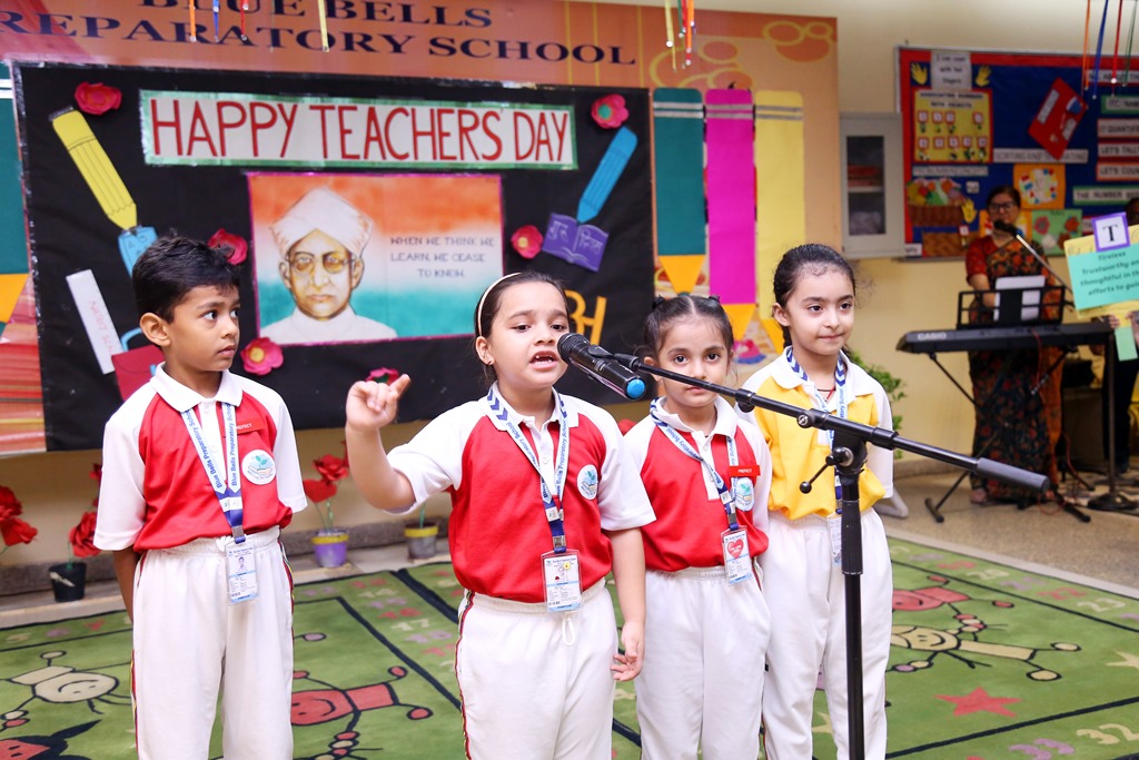 The students of Blue Bells Preparatory School put up a beautiful show to celebrate Teacher’s day with great reverence and grandeur on 4th September 2024. They expressed their love and gratitude and paid tribute to their teachers through very creative and lovely handmade cards. The programme incorporated a talk, poem, song, dance and acrostic poem indicating how teachers play a vital role in making their students responsible citizens of tomorrow and wonderful human beings.