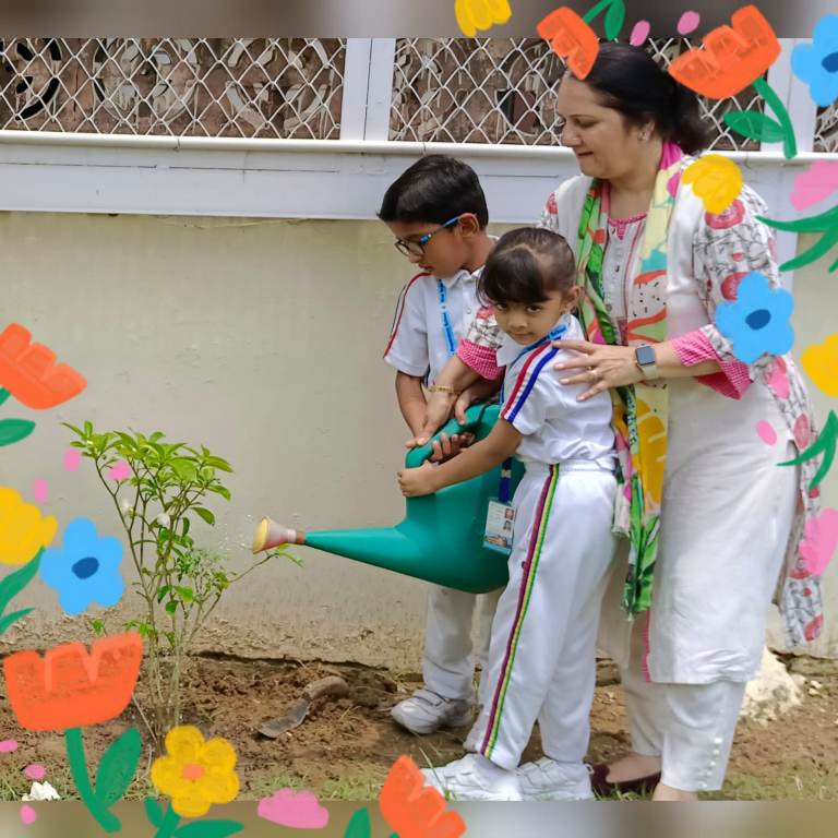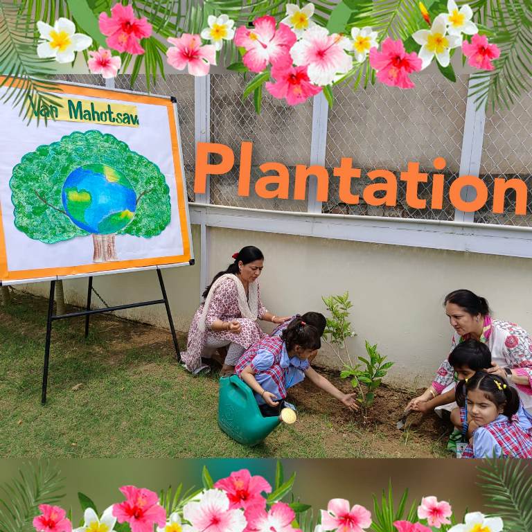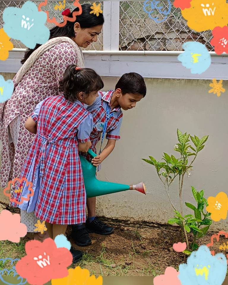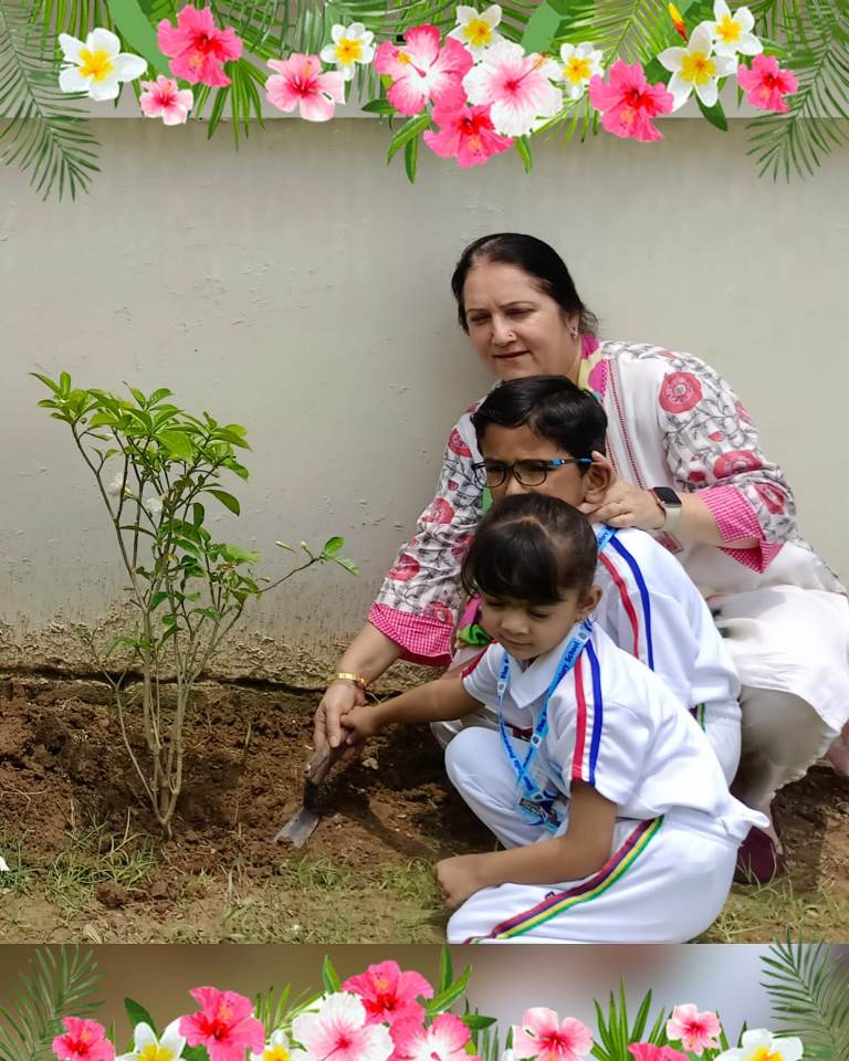 A plantation drive was undertaken in school wherein a variety of saplings of herbs, flowers and fruits were planted. She conveyed her wishes to the students and encouraged them to support tree planting.