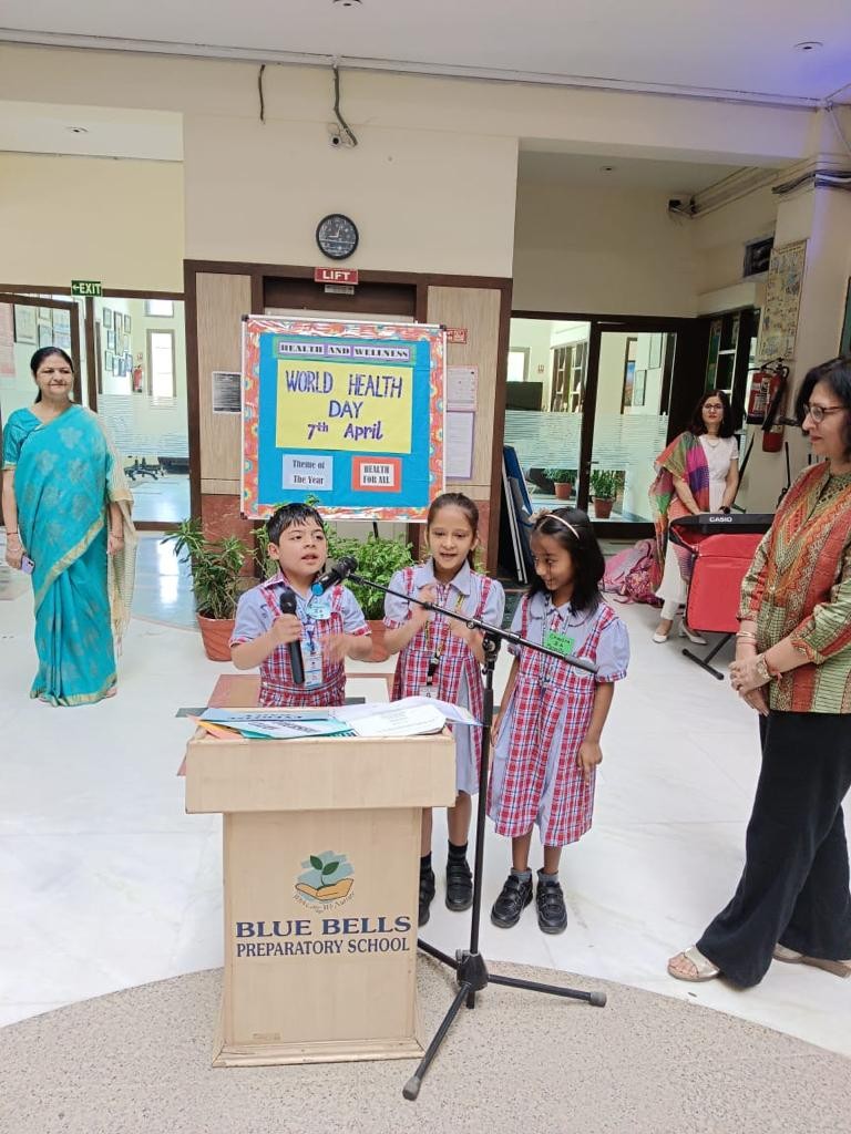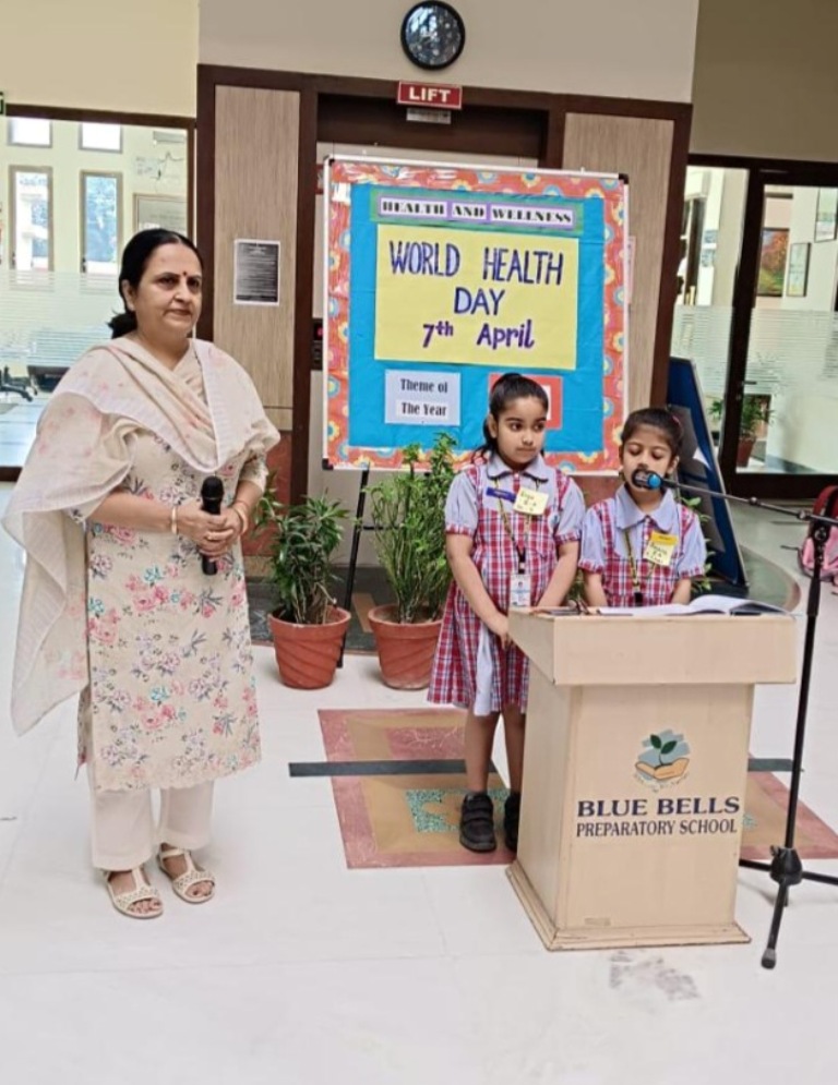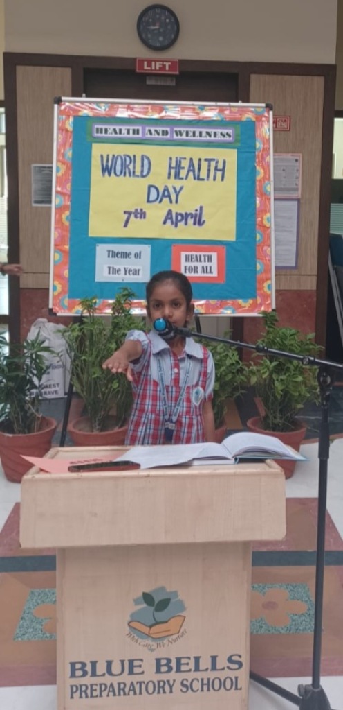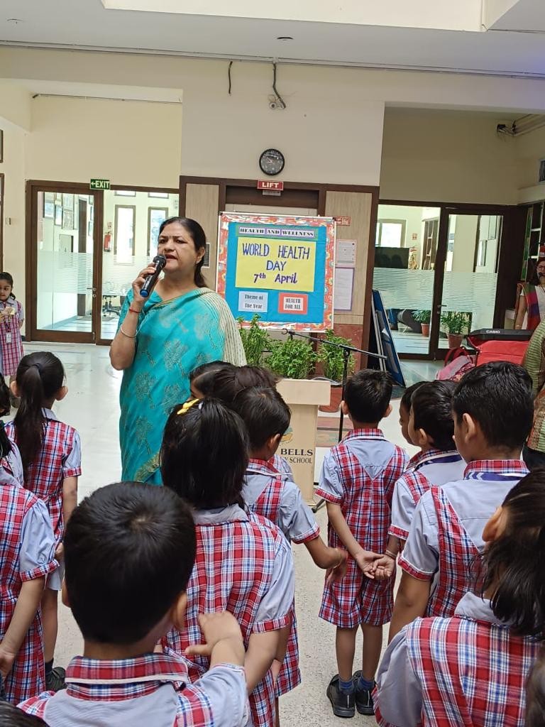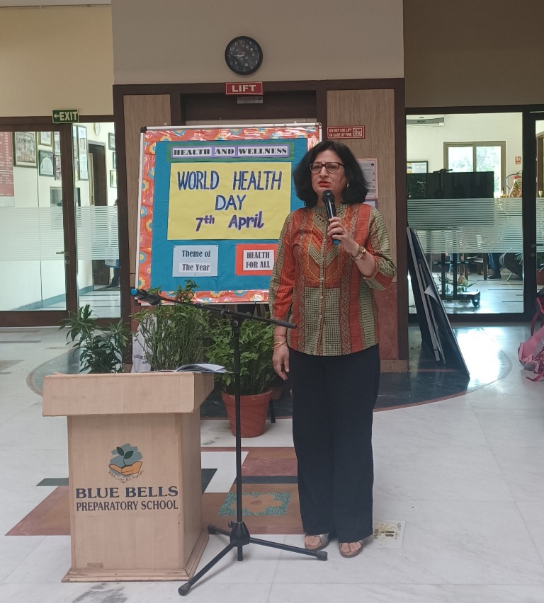 On World Health Day, a special assembly was organized for the students of Classes I and II. Students initiated the assembly by apprising everyone about the significance of World Health Day and its theme for the year 2023 i.e., “Health for All”. To make everyone aware of the importance of good health, they shared some tips to stay fit and healthy by showing relevant placards. A wonderful poem – ‘Eat Right, Sleep Right and Exercise Right’ was recited by the students to motivate all to eat a nutritious balanced diet and to do physical as well as mental exercises to maintain good health. Students were encouraged by our Headmistress Ms. Anu Sehgal, to remember that taking care of our health is of prime importance. She also highlighted that to stay fit and healthy one should always follow the tips that were discussed in the assembly.